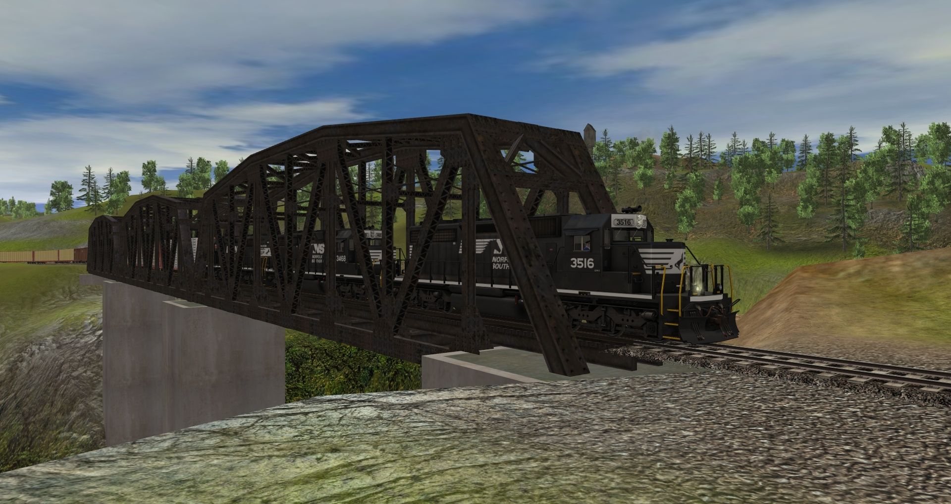 Tags: Trainz: A New Era, Kickstarter County, NS SD40-2 #3516 HP, NS SD40-2 #3468 HP, NS SD40-2 #3284 HP, PRR E8, Heavy 2-10-2 Standard w/Black wheels, GP9 SP 5623 Black Widow, Loco Boxcab Electric, Loco UP 0-6-0 #4609 TS12, 73ft Centerbeam AOK #27220, Mill Gondola 52' Railgon, NS 50' ACF Boxcar 1