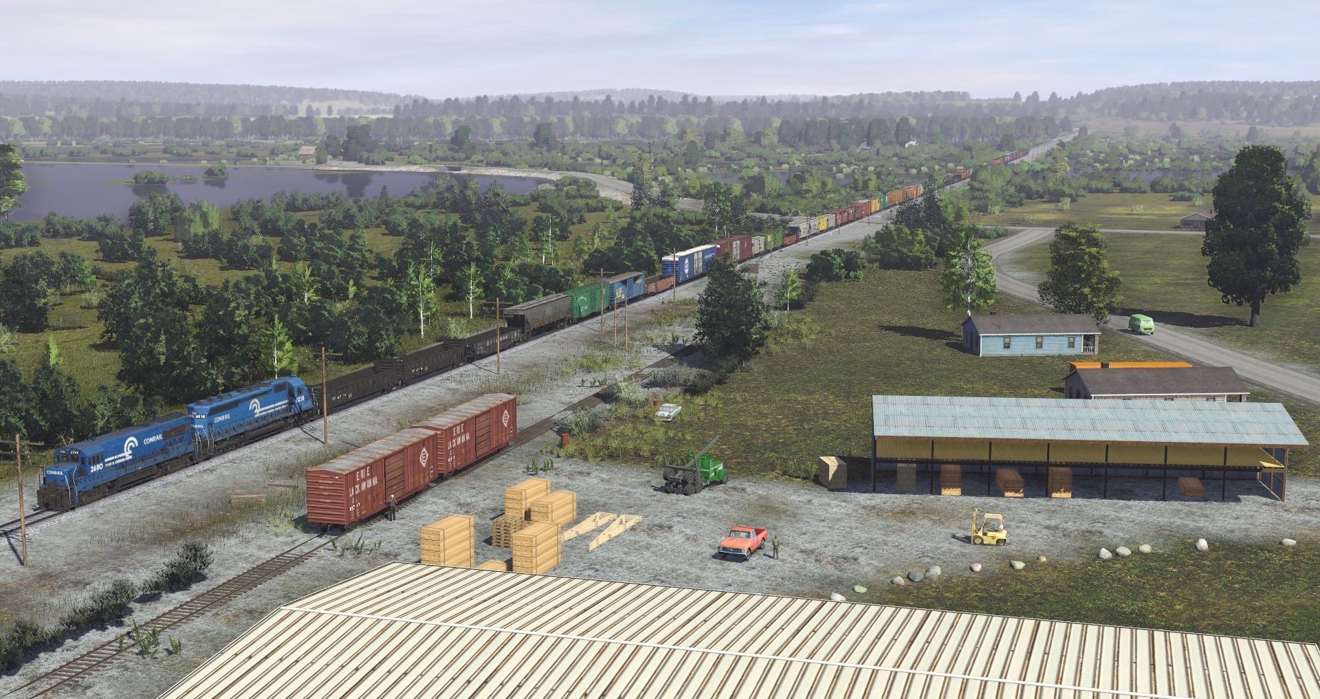 Tags: Trainz Railroad Simulator 2019, EL mahonning Division pre-Alpha, EL mahonning Division pre-Alpha - Default, CR ex-NH U25B ph4, CR SD45 (2a1 blue), 50ft Boxcar ERIE LACKAWANNA RAILWAY sp#, NW G72 Gondola, EL Greenville Gondola, DJJX Trinity 3 Bay Hopper, GM&O 50' PS-1, L&N 50' ACF Boxcar, NYC Greenville Gondola, N&W Thrall Auto Parts Boxcar 1, PRR Thrall Auto Parts Boxcar