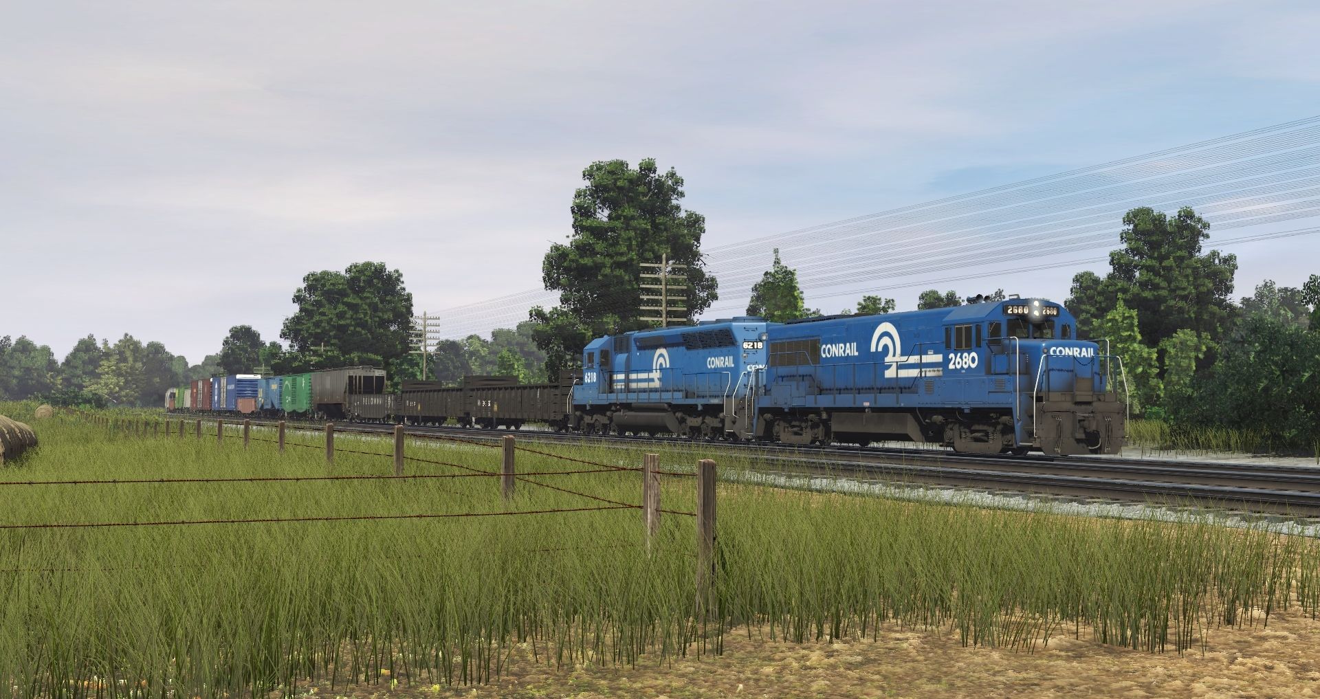 Tags: Trainz Railroad Simulator 2019, EL mahonning Division pre-Alpha, EL mahonning Division pre-Alpha - Default, CR ex-NH U25B ph4, CR SD45 (2a1 blue), NW G72 Gondola, EL Greenville Gondola, Invisible Train, DJJX Trinity 3 Bay Hopper, GM&O 50' PS-1, L&N 50' ACF Boxcar, NYC Greenville Gondola, N&W Thrall Auto Parts Boxcar 1, PRR Thrall Auto Parts Boxcar