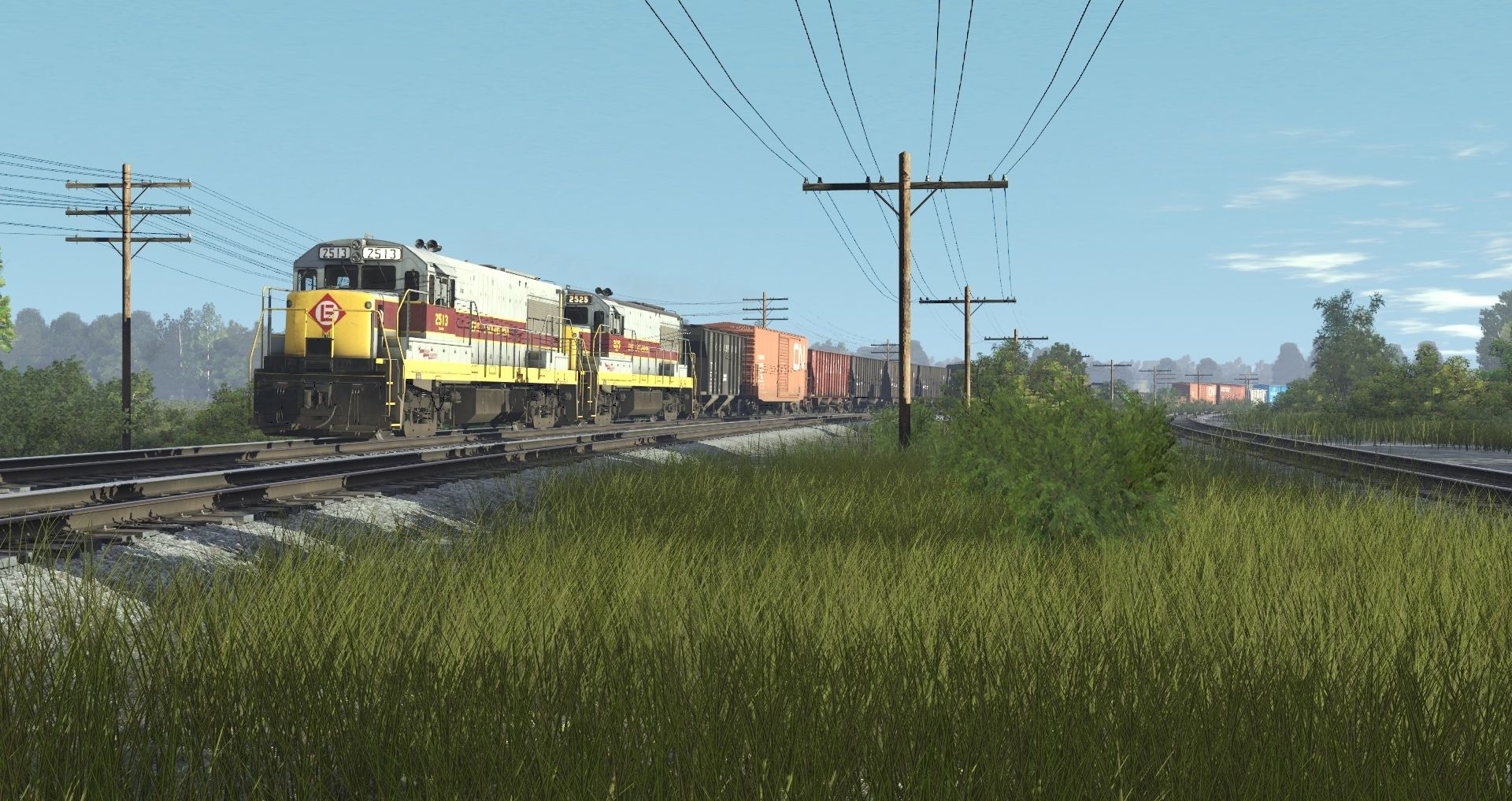 Tags: Trainz Railroad Simulator 2019, EL mahonning Division pre-Alpha, EL mahonning Division pre-Alpha - Default, EL U25B late 2513-2527, EL U25B 2513-2527, GP35: EL #2572, CRR LO 2003, CN 50' ACF Boxcar 1, ATSF 100 Ton Hopper (modern era), PC 100 Ton Hopper, NP 50' RBL, NYC Greenville Gondola, NW G72 Gondola, PRR 100 Ton Hopper
