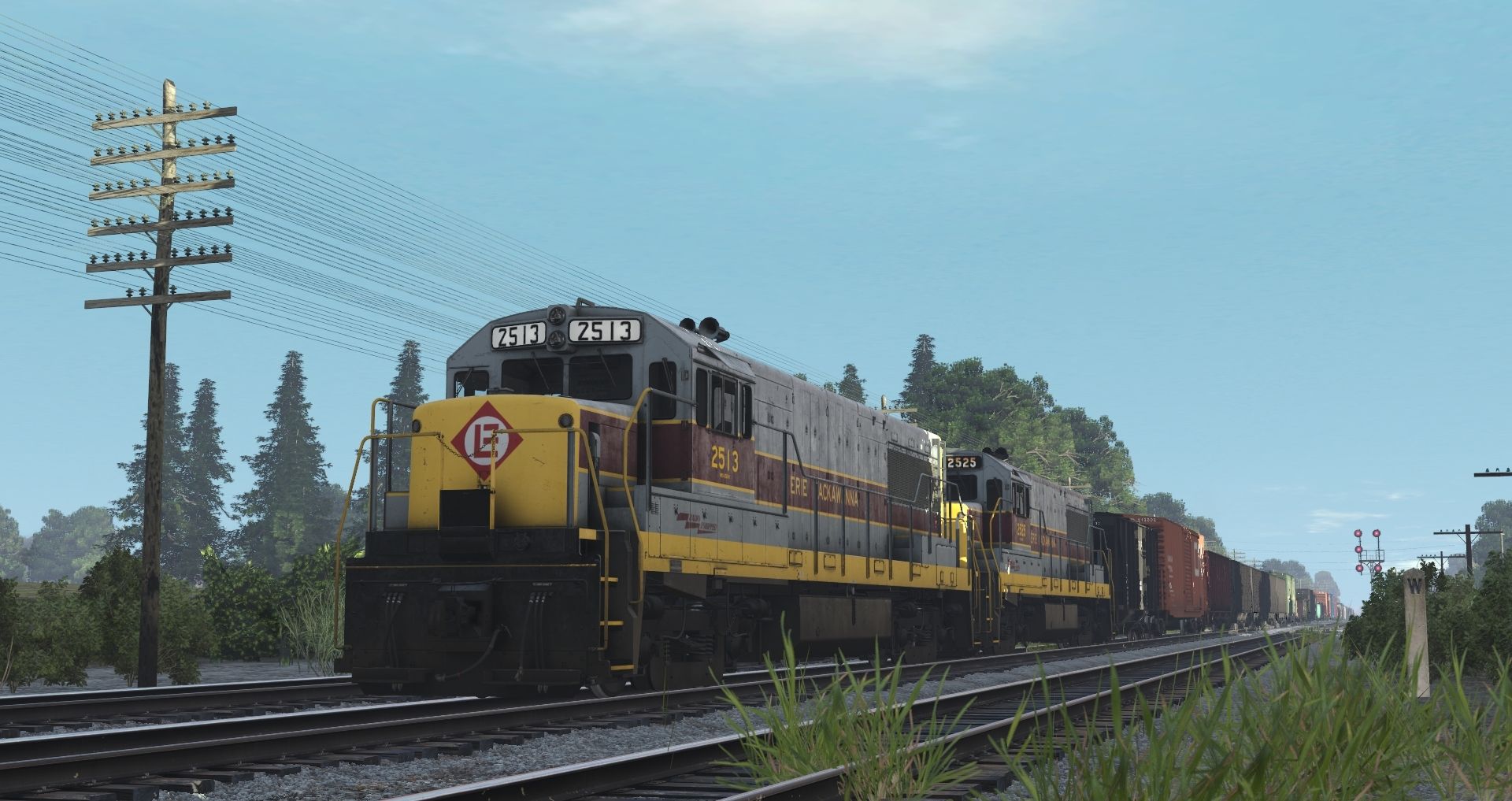 Tags: Trainz Railroad Simulator 2019, EL mahonning Division pre-Alpha, EL mahonning Division pre-Alpha - Default, EL U25B late 2513-2527, EL U25B 2513-2527, GP35: EL #2572, CRR LO 2003, CN 50' ACF Boxcar 1, ATSF 100 Ton Hopper (modern era), PC 100 Ton Hopper, NP 50' RBL, NYC Greenville Gondola, NW G72 Gondola, PRR 100 Ton Hopper
