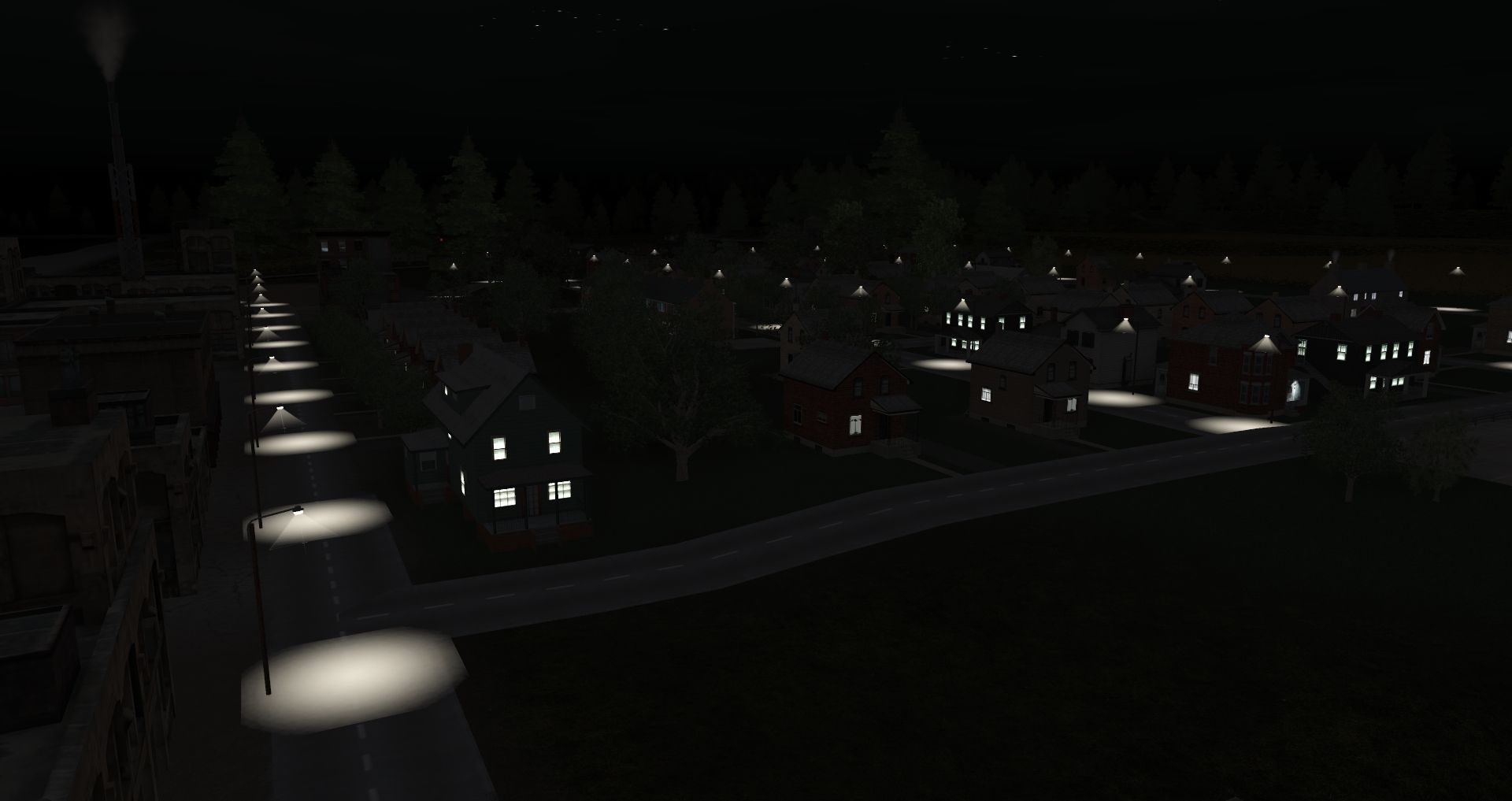 Caption: All is quiet as night sets in on the town of Harborview.