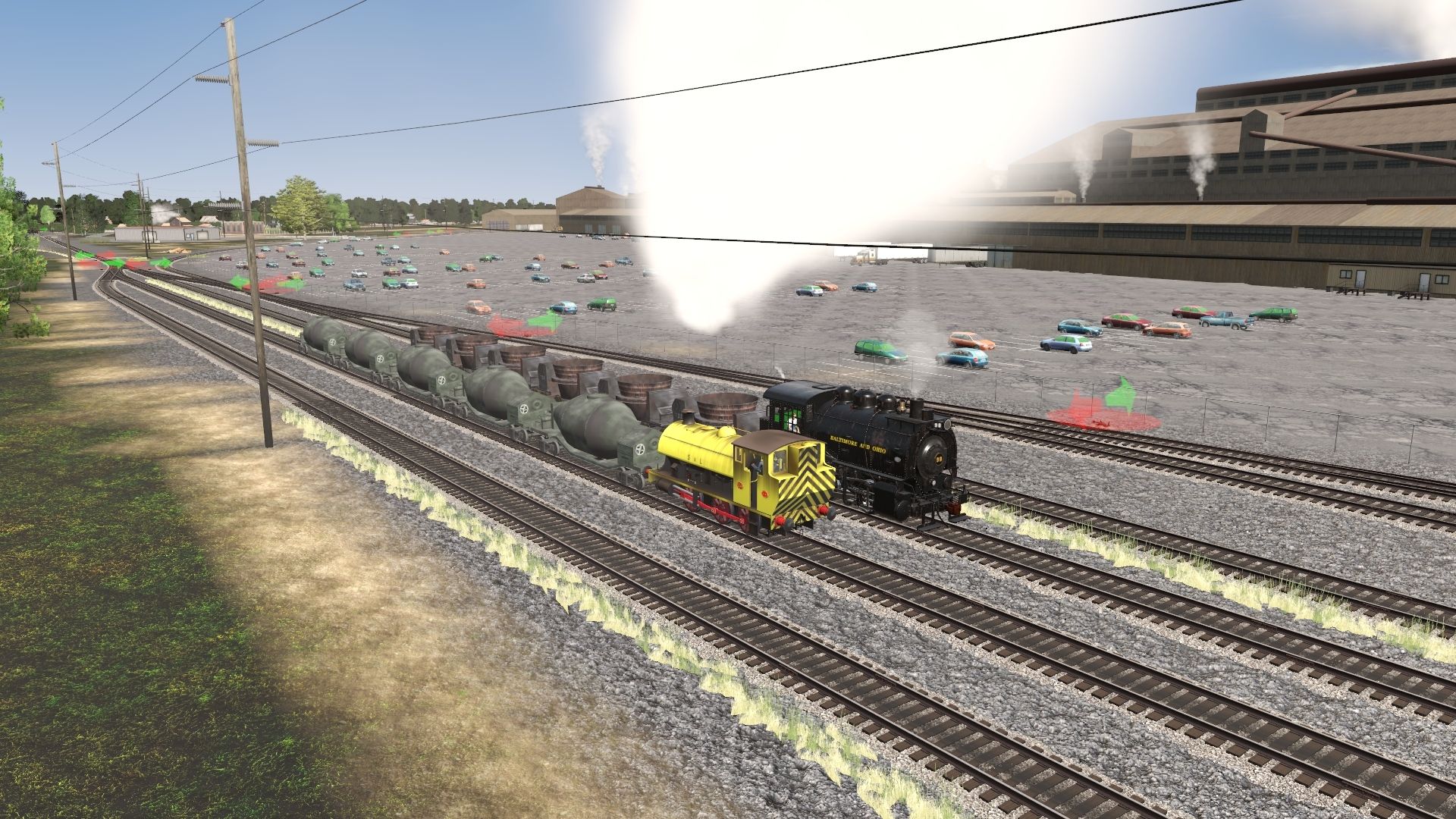 Tags: Trainz Railroad Simulator 2019, Wassneek Valley RR, New Circle route - Default, Corby Steelworks 0-6-0ST (Oil Burner), B&O Engine C16 V3, BR BBA Steel Carrier EWS loaded, Steel Industry Slag Car, BR BBA Steel Carrier brown loaded, SS Foundry Car