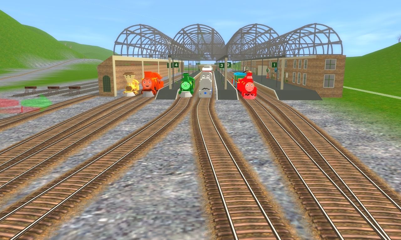 Tags: Trainz: A New Era, Sodor Route Release, Default, Farnsworth, Georgia the red engine, Doc The Medical Engine, Pete the brown engine, Jebediah the old engine, Georgia tender, doc tender, Birthday car 1, Pete tender, farnsworths first coach, Birthday car 2