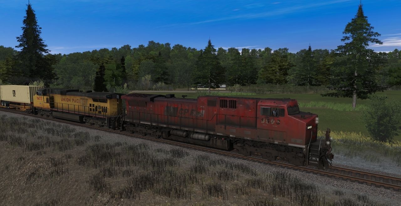 Tags: Trainz Railroad Simulator 2019, Dry Brook & Esopus Valley RR, Default, CP AC4400CW 9500-9582 TS19 4, UP C44-9W (ex-CNW), Spinecar A Unit Dirty, Spinecar C Unit Dirty, Spinecar D Unit Dirty, Spinecar E Unit Dirty, Spinecar B Unit Dirty, Wellcar Gunderson Unit B BNSF DES, Wellcar Gunderson Unit A BNSF DES, TTX Gunderson Wellcar Unit A, TTX Gunderson Wellcar Unit B