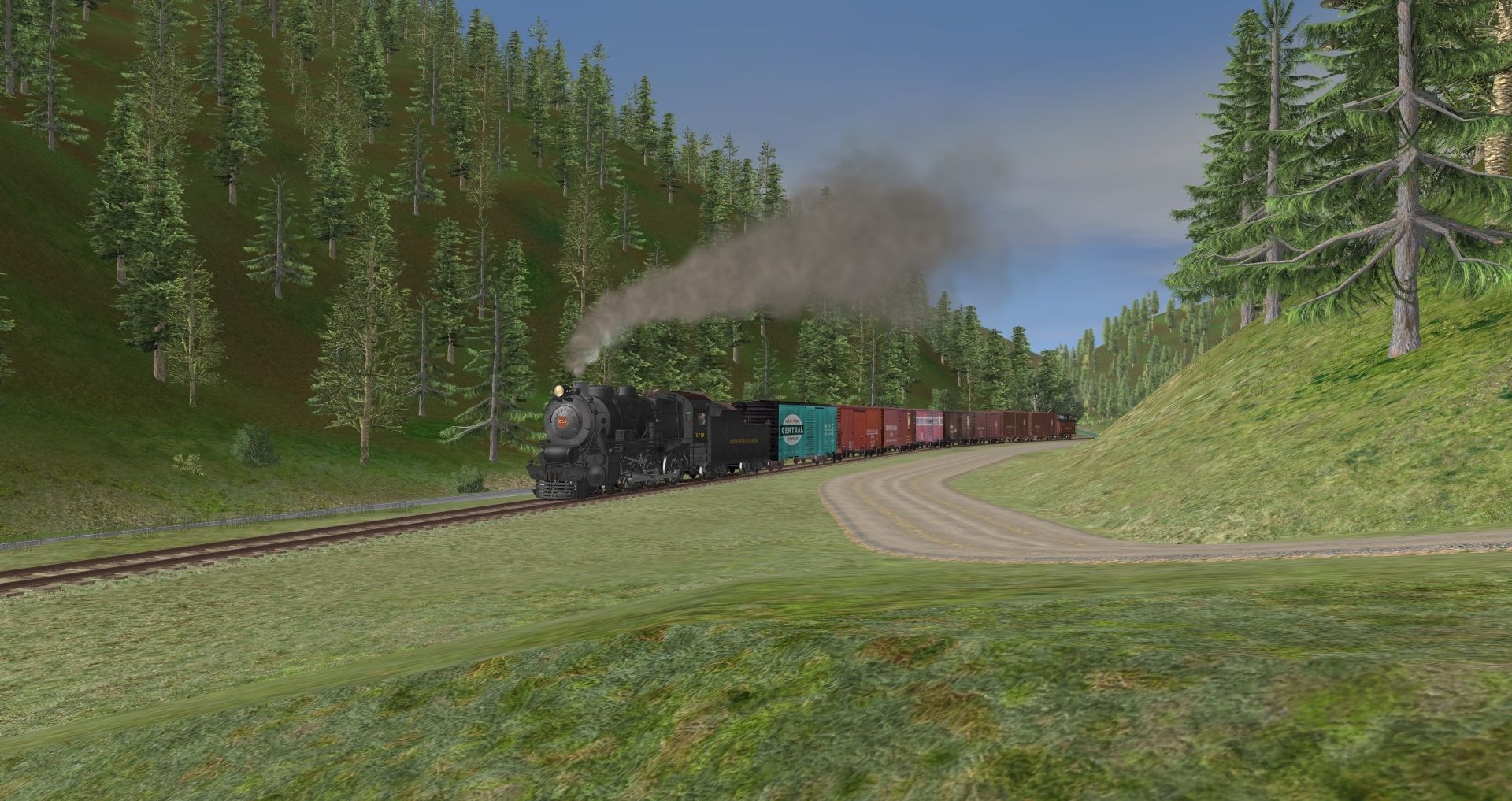 Tags: Trainz: A New Era, Milwaukee Road Avery-Drexel, PRR G5 Engine, PRR G5 Tender, 40ft Boxcar NYC 01, 40ft Boxcar PRR 16082, 40ft Boxcar PRR 76642, 40ft Boxcar PRR 30998, 40ft Boxcar PRR 79156, 40ft Boxcar PRR 109760, 40ft PRR AAR boxcar, PRR N5c Caboose 2