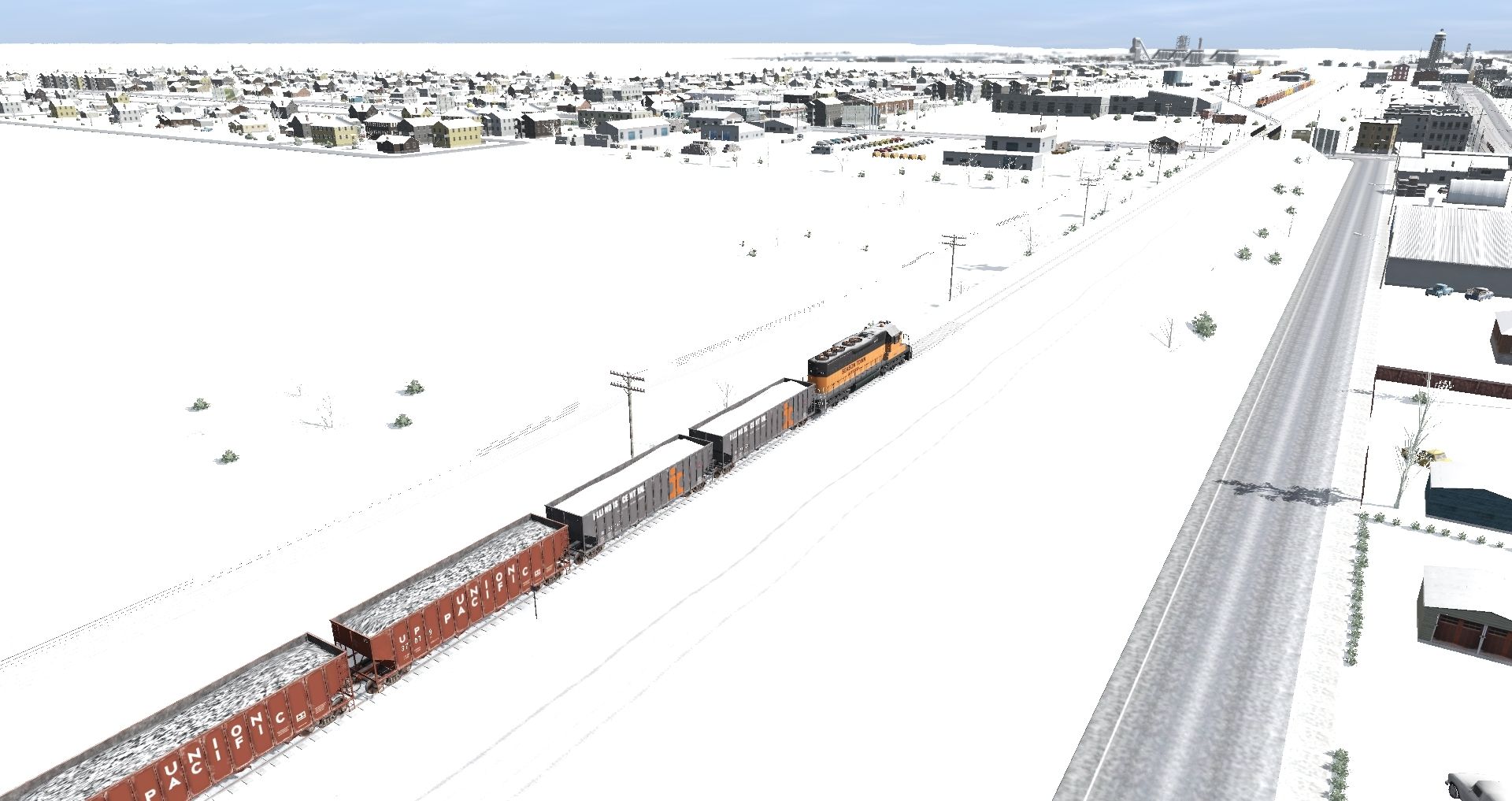 Tags: Trainz Railroad Simulator 2019, Season Town Northern RR, Season Town Northern RR - Limestone Transportation (snowy winter), TUME-71402180-SD40-2-STN, TUME-71402177-SD40-2-UP, TUME-300531-Tank-Car-MILW, TUME-300532-Tank-Car-GATX, TUME-300509-Boxcar-50ft-UP, TUME-300533-Tank-Car-SP, TUME-300510-Boxcar-50ft-UP, TUME-300534-Tank-Car-Sinclair, TUME-300511-Boxcar-50ft-GN, TUME-300501-Boxcar-50ft-MILW, TUME-300512-Boxcar-50ft-GN