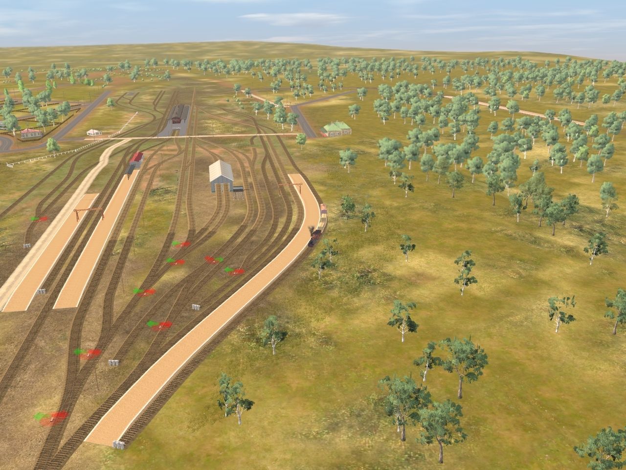 Tags: Trainz: A New Era, Warwick - Wallangarra, Freight Run, QDR C17 974 brown 3ft 6in, QDR C-17 tender New 3ft 6in, QR NG MTW Flatcar, QR NG BBV Guards van with Scope