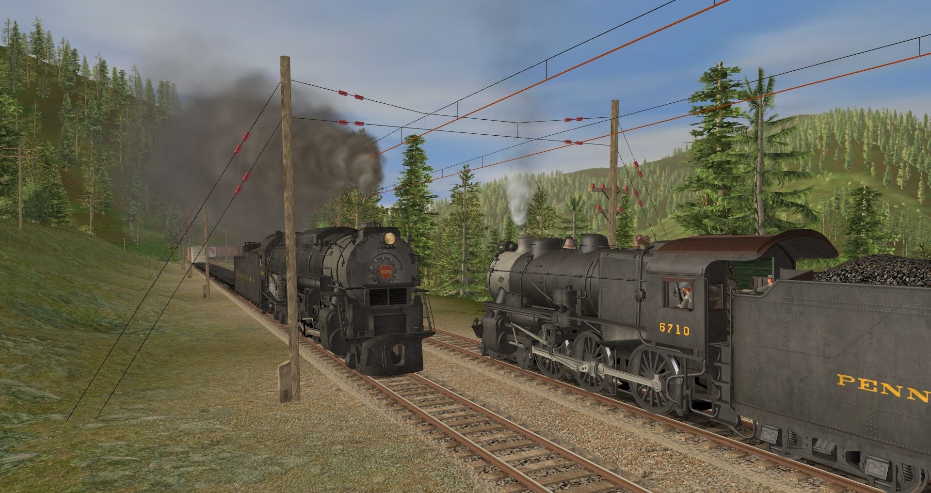 Tags: Trainz: A New Era, Milwaukee Road Avery-Drexel, PRR G5 Engine, PRR J1 Engine, PRR G5 Tender, 40ft Boxcar NYC 01, 40ft Boxcar PRR 16082, 40ft Boxcar PRR 76642, PRR J1 Tender, 40ft Boxcar PRR 30998, 40ft Boxcar PRR 79156, 40ft Boxcar PRR 109760, 70ton AAR Flatcar C&O