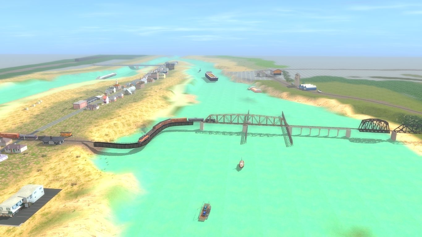 Tags: Trainz: A New Era, Milwaukee Road Iowa/Illinios Subdivision, MILW-GP9-283-001, Mill Gondola 52' Railgon, MILW-Boxcar-50ft-03, Caboose Milwaukee 992165 (BW), MILW-Boxcar-50ft-01, Tanker 40ft UTLX #, Tanker30GalkGATX59600, MILW-Wood-Chip-61ft-filled-01, Barge Grain Open Cover