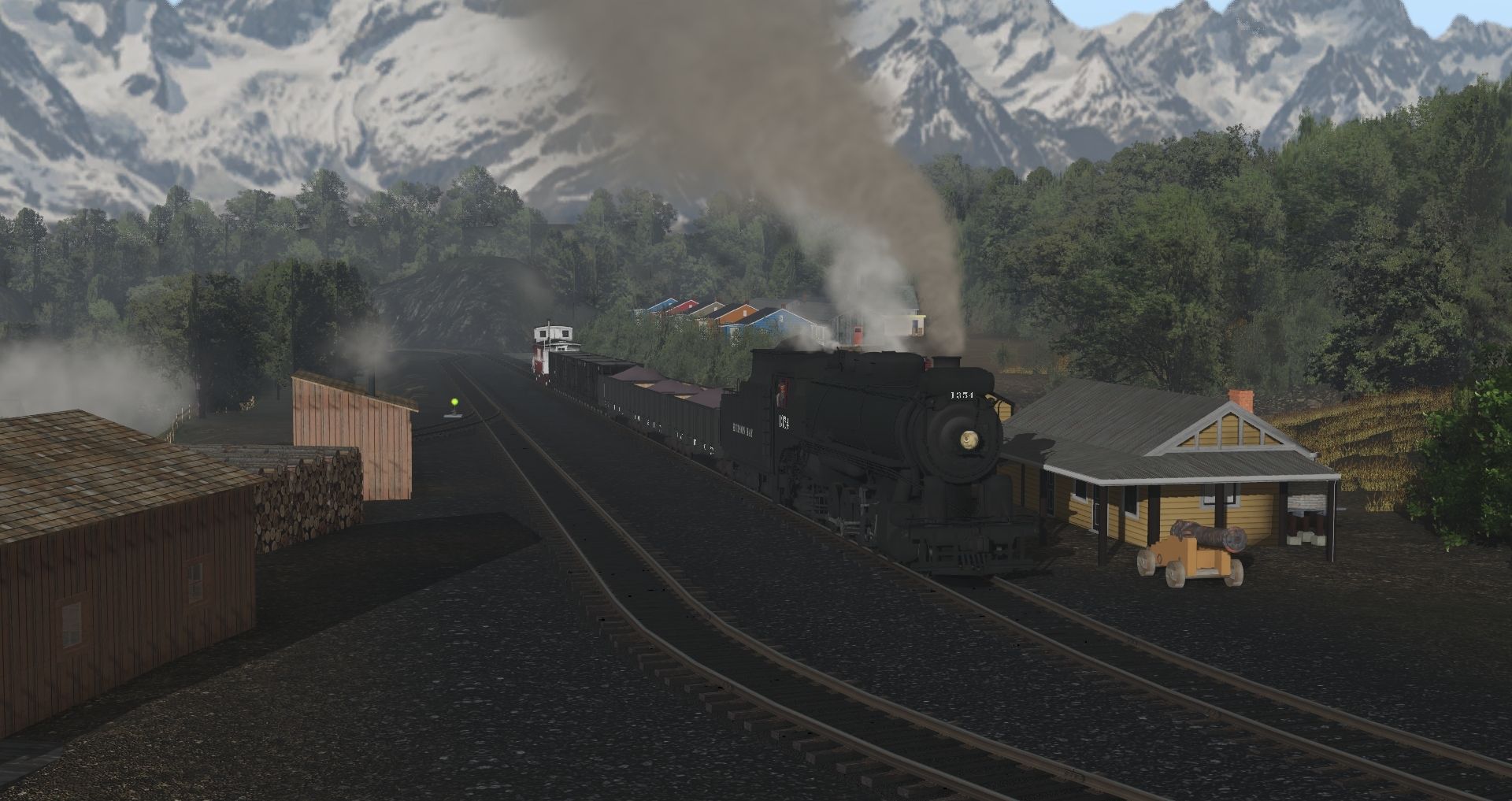Tags: Trainz Railroad Simulator 2019, Eastern Model Railway 1.21, Eastern Model Railway 1.21 - Default, HB M-3c Engine v2, HB K1 Engine, HB M-3c Engine, HB B-5c Engine, YVRR_Gang_Car, WVRR 30' Flatcar 1920s, YVRR_Ballast_Car_1102, HB K1 Tender V2, YVRR_Ballast_Car_1103, 36.5ft Stockcar SPdeM S-40-5, 36ft Boxcar LV 1