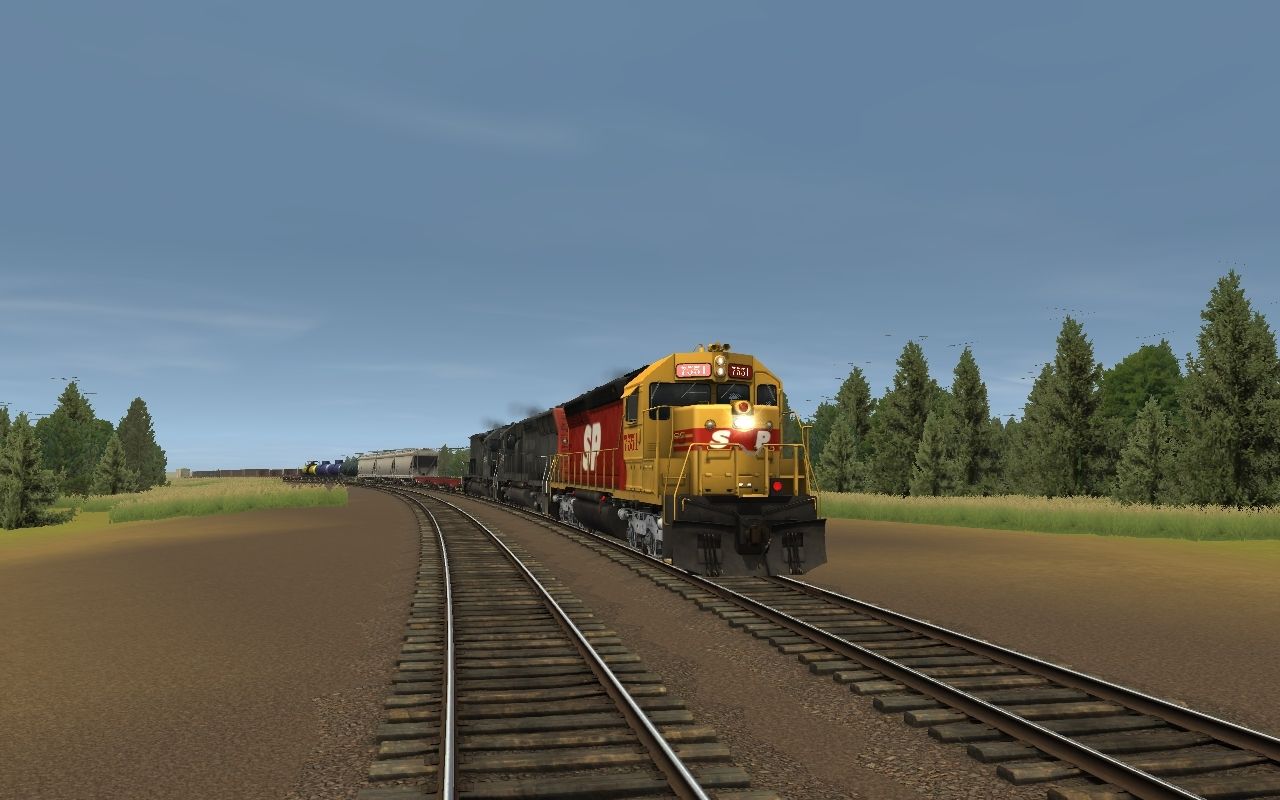 Tags: Trainz: A New Era, ATSF Transcon - Maine AZ Crossing, SP SD45R 7551, SP SD45, SP SD40T-2, JRPX ACF Centerflow 4 Bay round hatch, Oil Tanker UTLX 60 Ft, MN MOW GATX, Penn Salt GATX Tanker, Log Wagon Short Knuckle, Mill Gondola 52' Railgon, Mill Gondola 52' WL&G (5700 series), PRR FM flat car