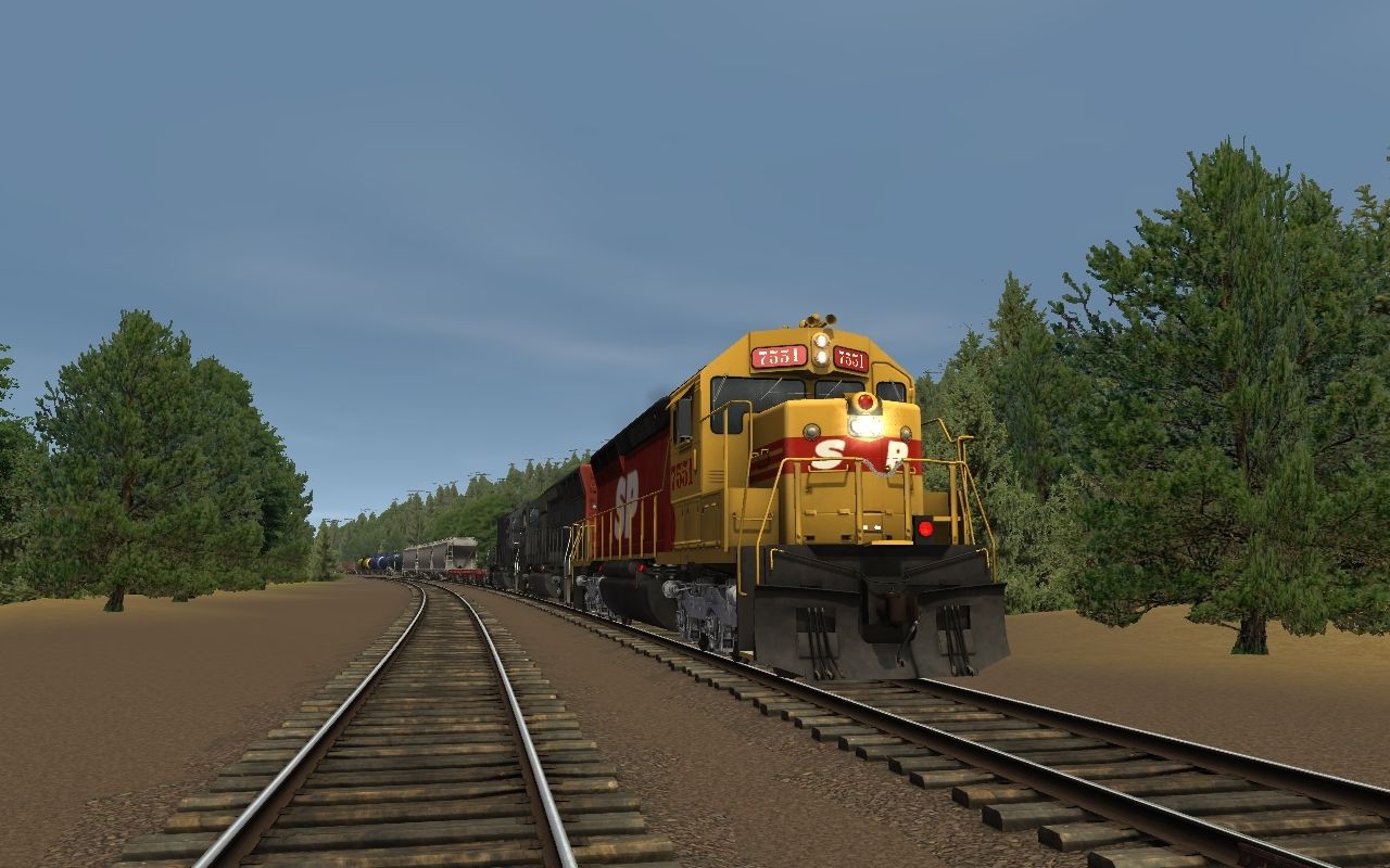 Tags: Trainz: A New Era, ATSF Transcon - Maine AZ Crossing, SP SD45R 7551, SP SD45, SP SD40T-2, JRPX ACF Centerflow 4 Bay round hatch, Oil Tanker UTLX 60 Ft, MN MOW GATX, Penn Salt GATX Tanker, Log Wagon Short Knuckle, Mill Gondola 52' Railgon, Mill Gondola 52' WL&G (5700 series), PRR FM flat car