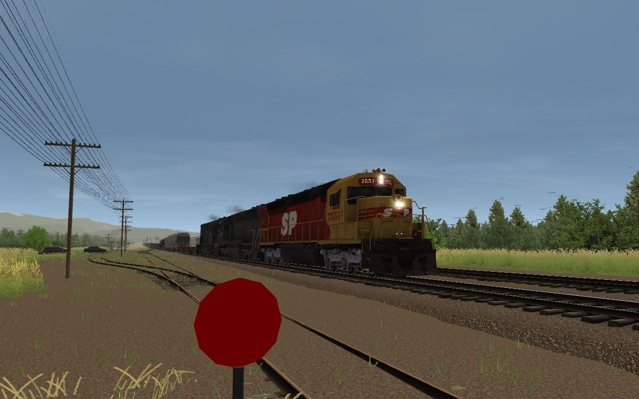 Tags: Trainz: A New Era, ATSF Transcon - Maine AZ Crossing, SP SD45R 7551, SP SD45, SP SD40T-2, JRPX ACF Centerflow 4 Bay round hatch, Oil Tanker UTLX 60 Ft, MN MOW GATX, Penn Salt GATX Tanker, Log Wagon Short Knuckle, Mill Gondola 52' Railgon, Mill Gondola 52' WL&G (5700 series), PRR FM flat car