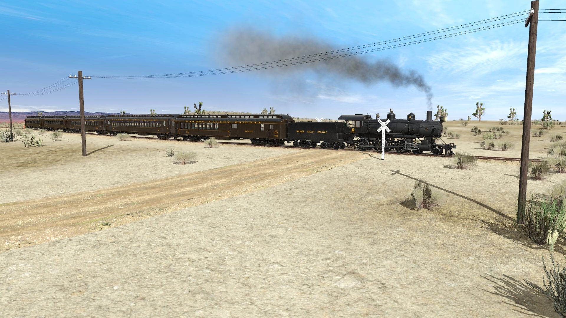 Tags: Trainz Railroad Simulator 2019, Mojave Crossing, Desert Drive, WVRR No. 6(2) Ca. 1930s, WVRR No. 6(2) Tender Ca. 1930s, WVRR 135 Series Combine Ca. 1930s, WVRR 188 Series Coach Ca. 1930s, WVRR 225 Series Chair Car Ca. 1930s, WVRR 170 Series Coach Ca. 1930s