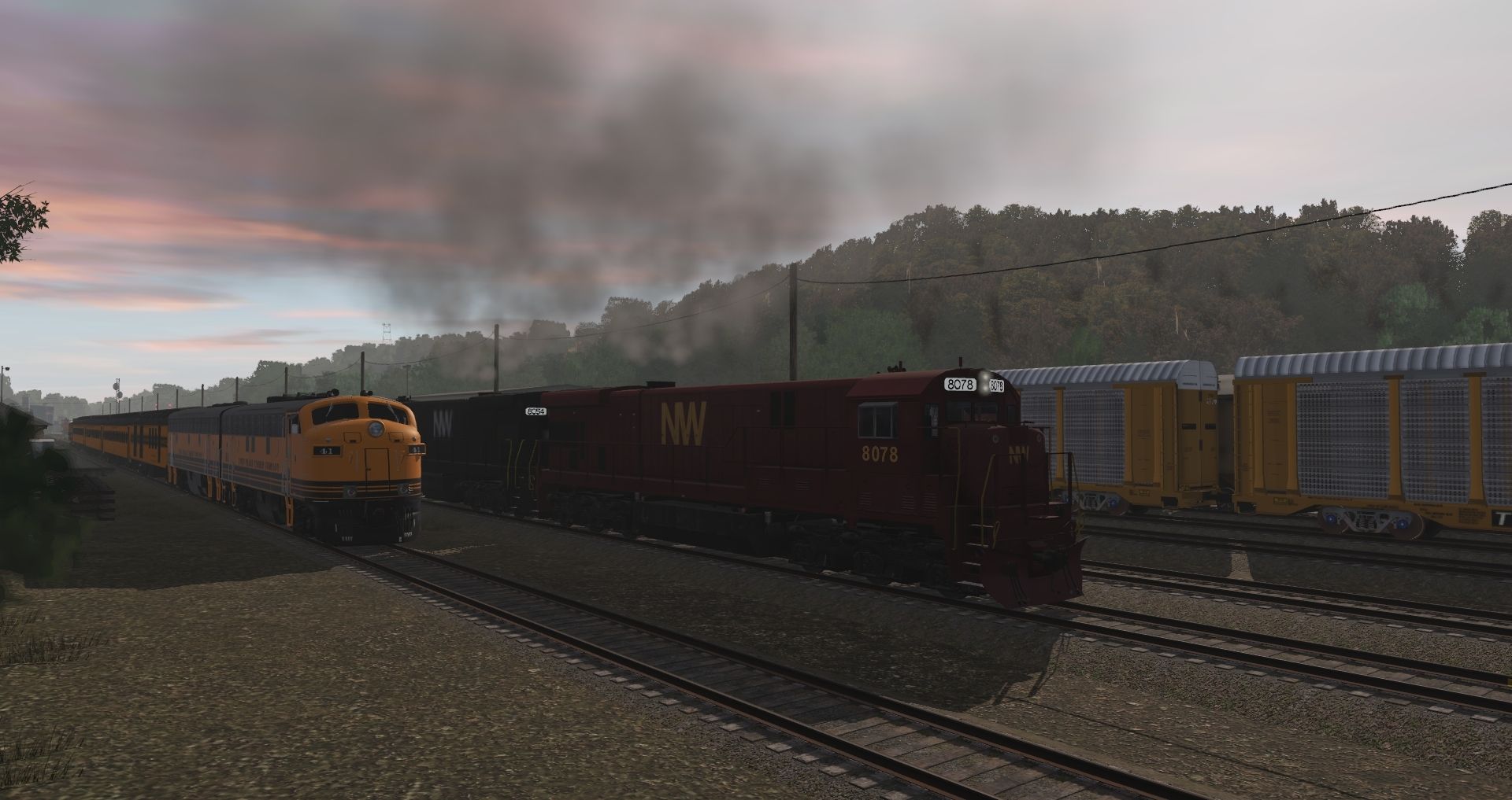 Tags: Trainz Railroad Simulator 2019, Datsun Junction, Datsun Junction - Default, TPTC F7A #41, TPTC F7B, NW C30-7, NW C30-7 Red, CN C40-8W, EMD GP9rm CN #7239, CN C44-9WL 2500-2522, RVSX SW1500, CP SW1500 #1298, CP SW1500 #1299, BC RAIL SD40-2 763-767