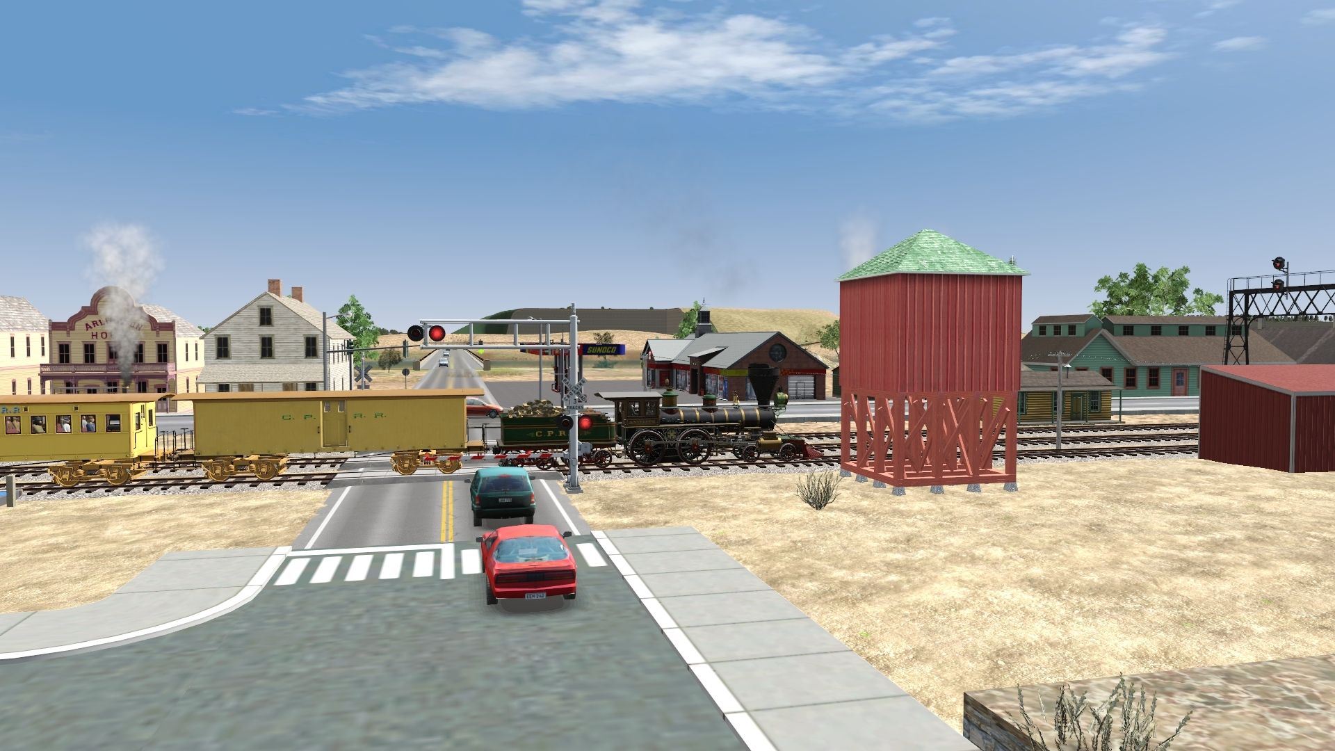 Tags: Trainz Railroad Simulator 2019, Wassneek Valley RR present, Wassneek Valley RR present - Default, Central Pacific 29 'Antelope, Central Pacific Baggage Car, Central Pacific 29 Tender, Central Pacific Arched-Roof Coach 1, Central Pacific Clerestory Coach Smoking, Central Pacific Arched-Roof Coach 2, Central Pacific Passenger Coach No 5, Central Pacific 25ft 1860s Caboose (red), 2ft Bogie Open Wagon, MV_Feldbahn_Kipplore_600mm