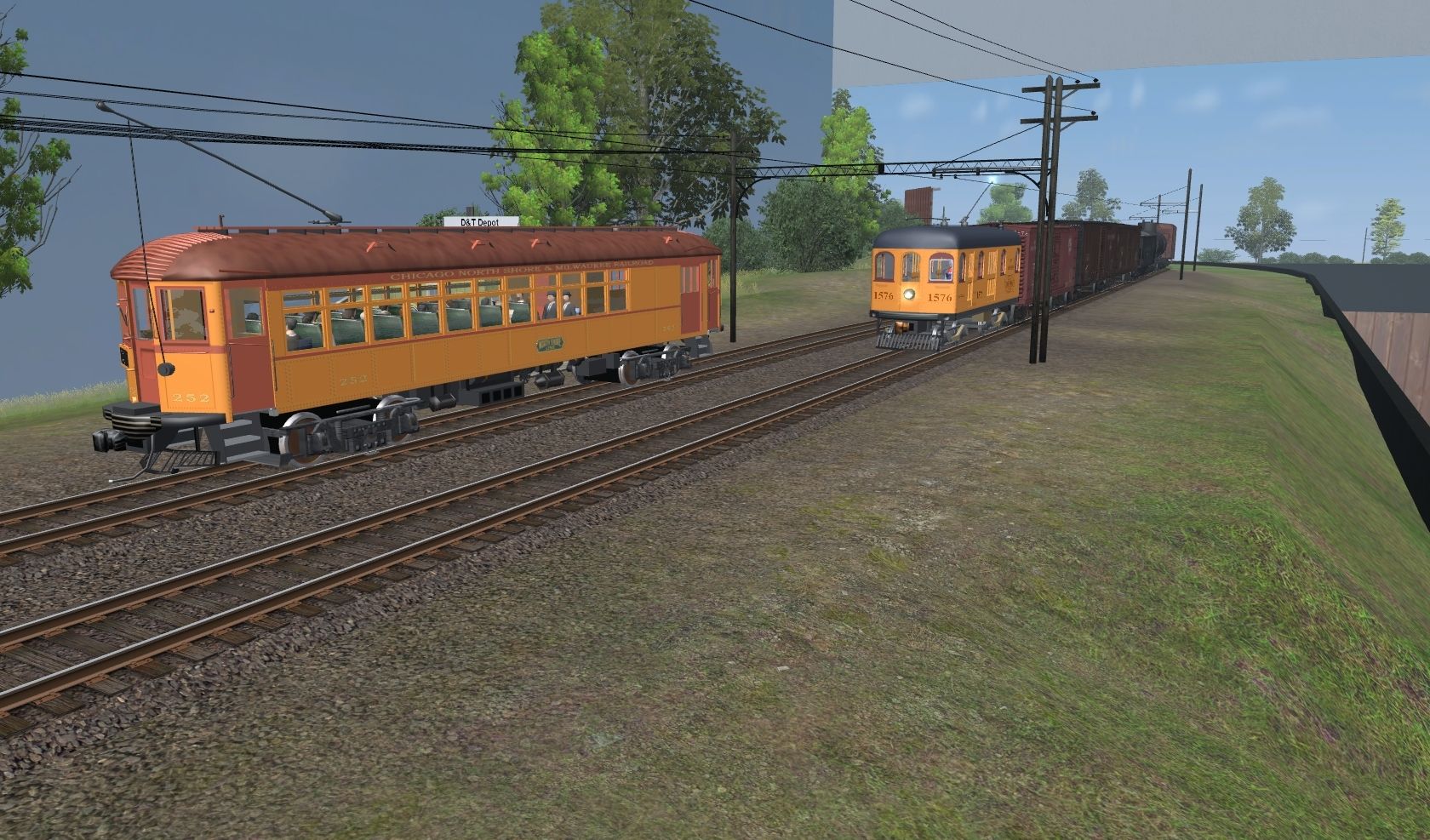 Tags: Trainz: A New Era, Dayton & Troy Electric Railway, North Shore Combine Class 250 Orange, ITS Class B Motor - Orange, North Shore Coach Class 150 Streamline, North Shore Combine Class 250 Streamline, 36ft Boxcar SSW, 40ft Boxcar C&O, 40ft Boxcar D&H Wood 1, USRA 55T H B&O Mid, 38' X-3 Tank Car HTCX, 40ft Boxcar ACL, 40ft Boxcar Fowler CCFtW&C