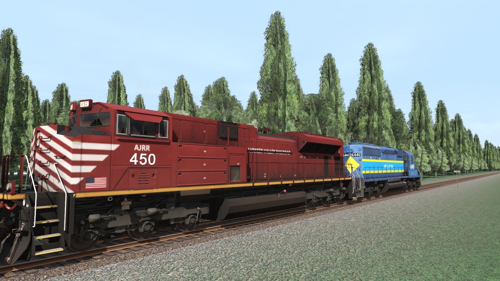 Tags: Trainz Railroad Simulator 2019, Arel and Jolene Railroad, Late night test, A&J ES44AC, A&J (Ex-PVRX) SD70M-2, CR SD40-2 2a, BN Trinity 3 Bay Hopper, RBOX 50ft Boxcar FMC, RFMX Trinity 3 Bay Hopper, RI Greenville Gondola, SAMX ACF Centerflow 4 Bay round hatch W, Silica Hopper Degusso DES, SIRX Trinity 3 Bay Hopper, SIRX Cylindrical Hopper