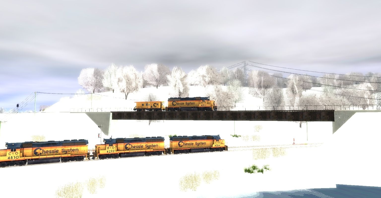 Tags: Trainz: A New Era, Sandpatch, Sandpatch - Default, Chessie System GP40-2, 50ft Airslide Hop GACX #48195 GoldenLoaf, 50ft RI 716191, 50ftBox Tidewater145(LARS), Chessie System Bay Window Caboose 1, 89 flat wth 4 SemiK loads, #54'_UP(LARS), #54'AW_Hopper(LARS), #54'FarmersCoop(LARS), #54'GTW(LARS), #54'NMC_Hopper(LARS)