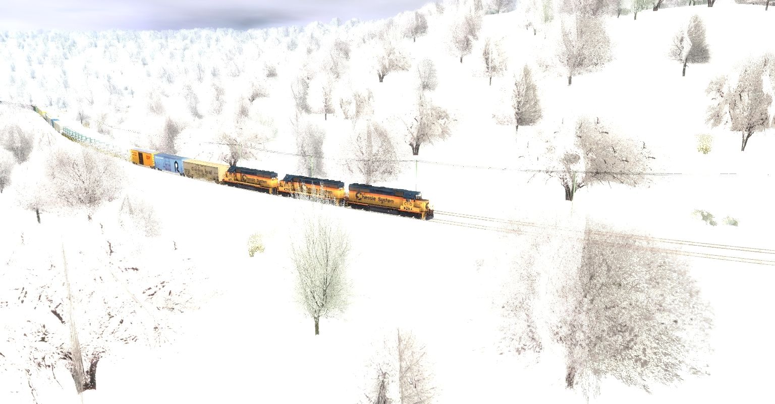 Tags: Trainz: A New Era, Sandpatch, Sandpatch - Default, Chessie System GP40-2, 50ft Airslide Hop GACX #48195 GoldenLoaf, 50ft RI 716191, 50ftBox Tidewater145(LARS), 89 flat wth 4 SemiK loads, #54'_UP(LARS), #54'AW_Hopper(LARS), #54'FarmersCoop(LARS), #54'GTW(LARS), #54'NMC_Hopper(LARS), #54French's(LARS)