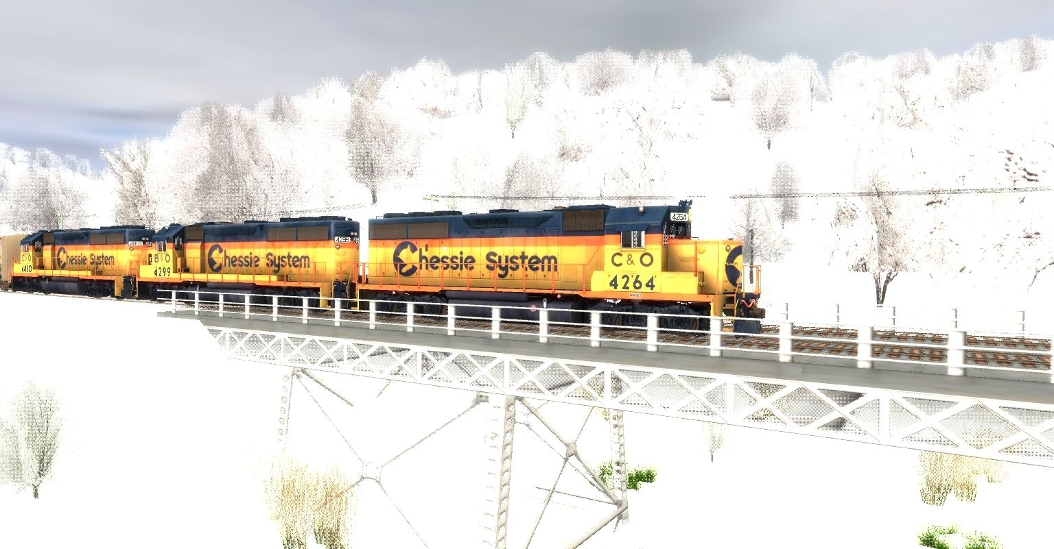 Tags: Trainz: A New Era, Sandpatch, Sandpatch - Default, Chessie System GP40-2, 50ft Airslide Hop GACX #48195 GoldenLoaf, 50ft RI 716191, 50ftBox Tidewater145(LARS), 89 flat wth 4 SemiK loads, #54'_UP(LARS), #54'AW_Hopper(LARS), #54'FarmersCoop(LARS), #54'GTW(LARS), #54'NMC_Hopper(LARS), #54French's(LARS)