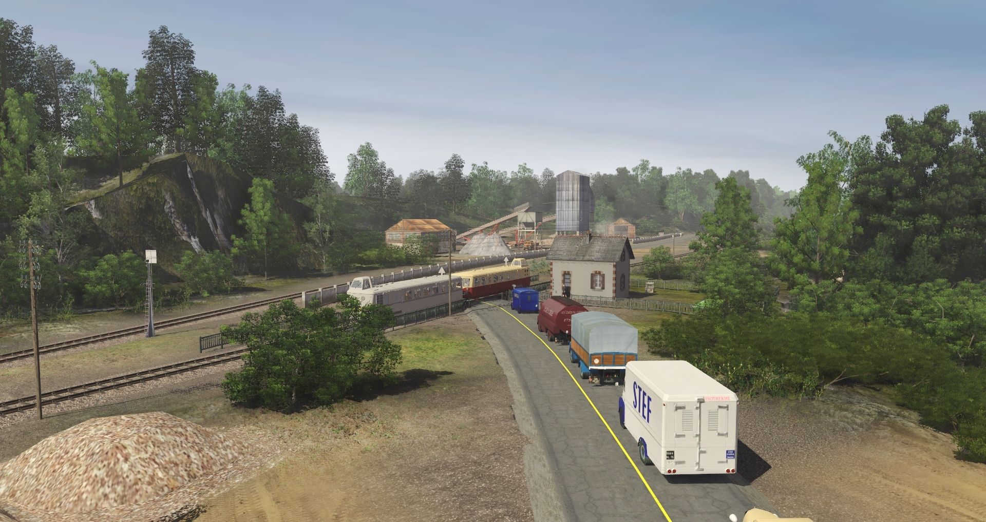Tags: Trainz Railroad Simulator 2019, Voyages en Finistere en 1950 nouvelle rotonde PBR 2019 propre, Voyages en Finistere en 1950voies vincentrh nouvelle rotonde - Default, RD29 autorail x5800 gris AD v6, RD29 autorail x5800 rouge