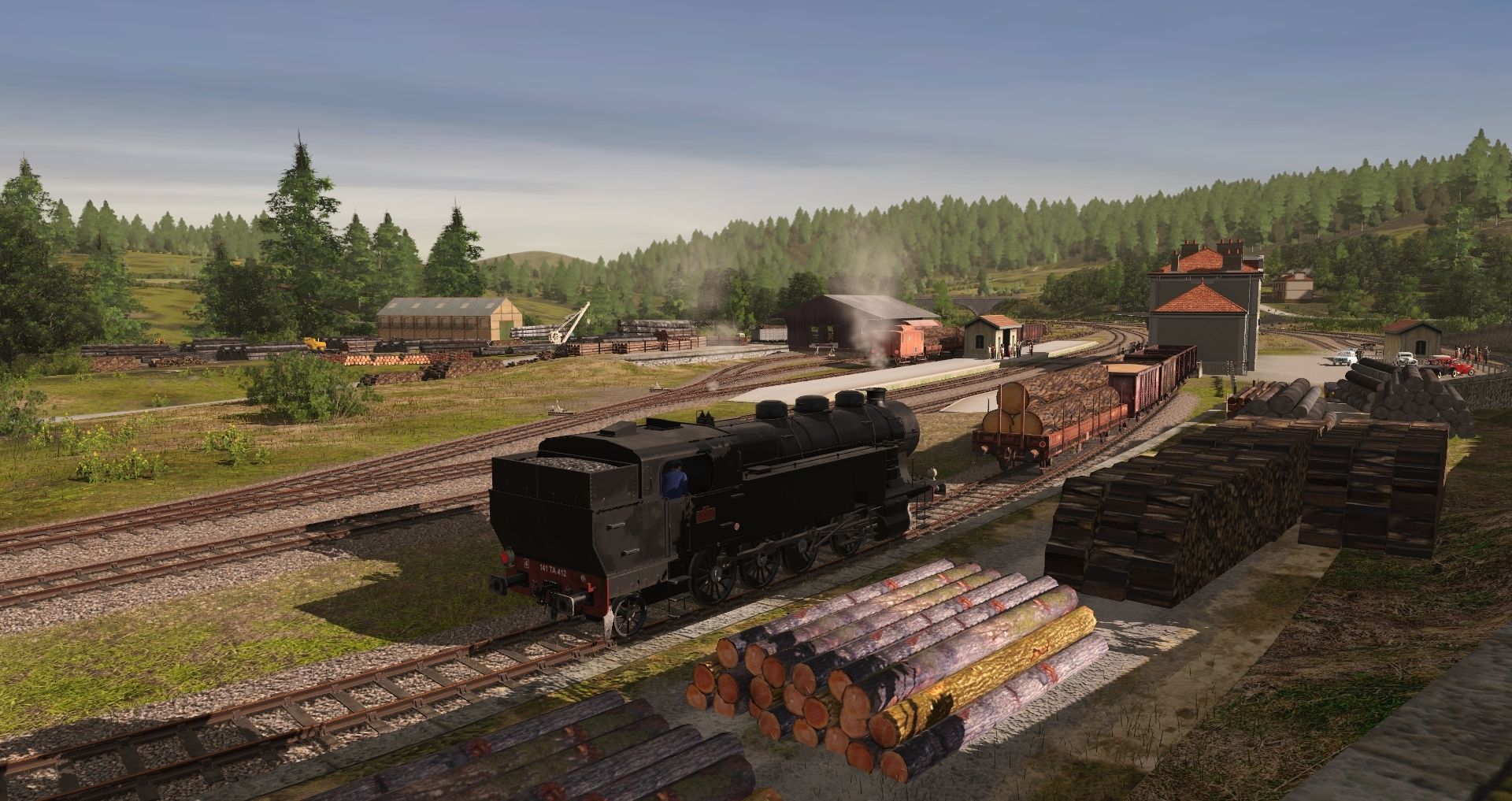 Tags: Trainz Railroad Simulator 2019, Le Cheylard sans textures 1960 bis, Le Cheylard sans textures 1960 bis - Default, SNCF 141TA black ©, De Dion Bouton NC, SNCF tombereau standart freine, SNCF tombereau standart A, SNCF dumper, SNCF_fourgon-frein_guerite, RD29 wagon chaux, SNCF plat a haussettes ranchers multiloads, SNCF couvert G4, RD29 wagon Uas2, RD29 wagon Uas1