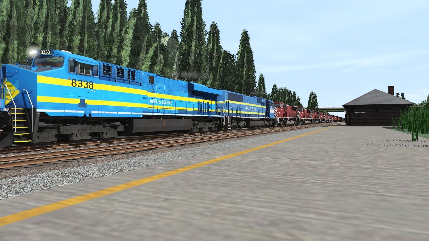 Tags: Trainz Railroad Simulator 2019, Arel and Jolene Stateline Route, Default, A&J ES44AC, A&J SD70MAC, PVRX SD9043MAC, A&J (Ex-PVRX) SD80MAC, A&J (Ex-NS) C40-9W, A&J (Ex-NS) C40-9
