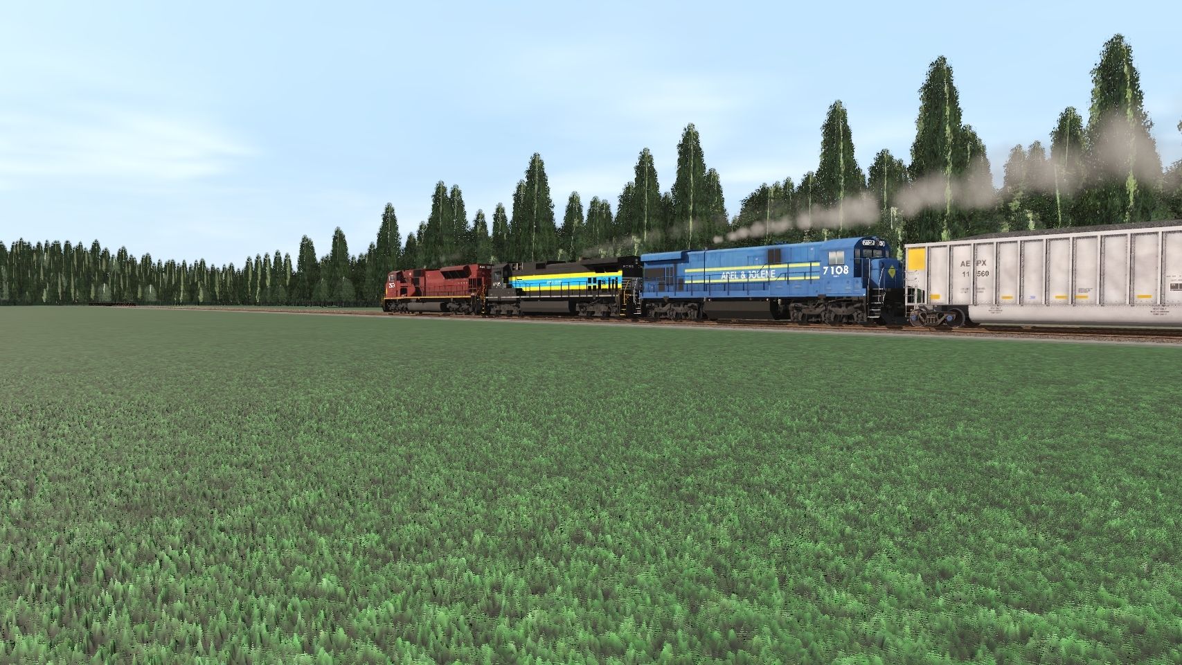 Tags: Trainz Railroad Simulator 2019, Arel and Jolene Stateline Route, A&J 606, A&J C30-7A, A&J (Ex-NS) C40-9, A&J (Ex-PVRX) SD80MAC, JR G Bethgon AEPX