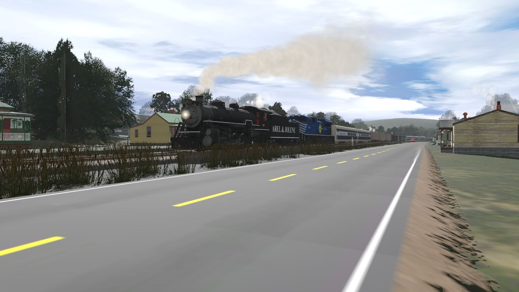 Tags: Trainz Railroad Simulator 2019, WM & B&O Mega Route, Default, A&J Mikado 695, A&J SD70M-2, A&J Mikado 695 Tender, A&J Diner/Lounge 500, A&J Coach 450, N&W NS Powhatan Arrow 02 P2 Divided Coach 511, N&W Powhatan Arrow 04 P3 Standard Coach 536, N&W Powhatan Arrow 06 D1 Diner 494, Southern Coach 1081 Heavyweight, Southern Coach 1067 Archroof, Southern Coach 832 Lounge