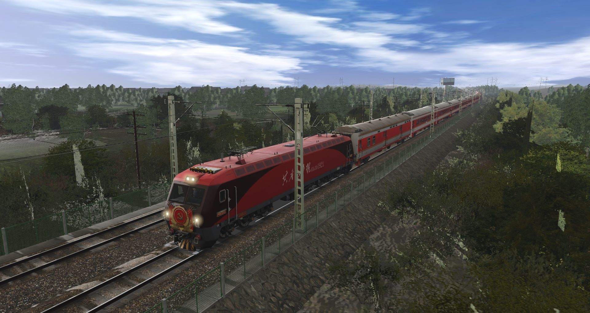 Tags: Trainz Railroad Simulator 2019 模拟火车 2019, CHN Trainz Jingha V2.8, K7516, CHN HXD3D No.1921, CHN XL25G baggage car, 硬座25G客运列车, CA25G旅客餐车, 软卧25G客运列车, 硬卧25G客运列车