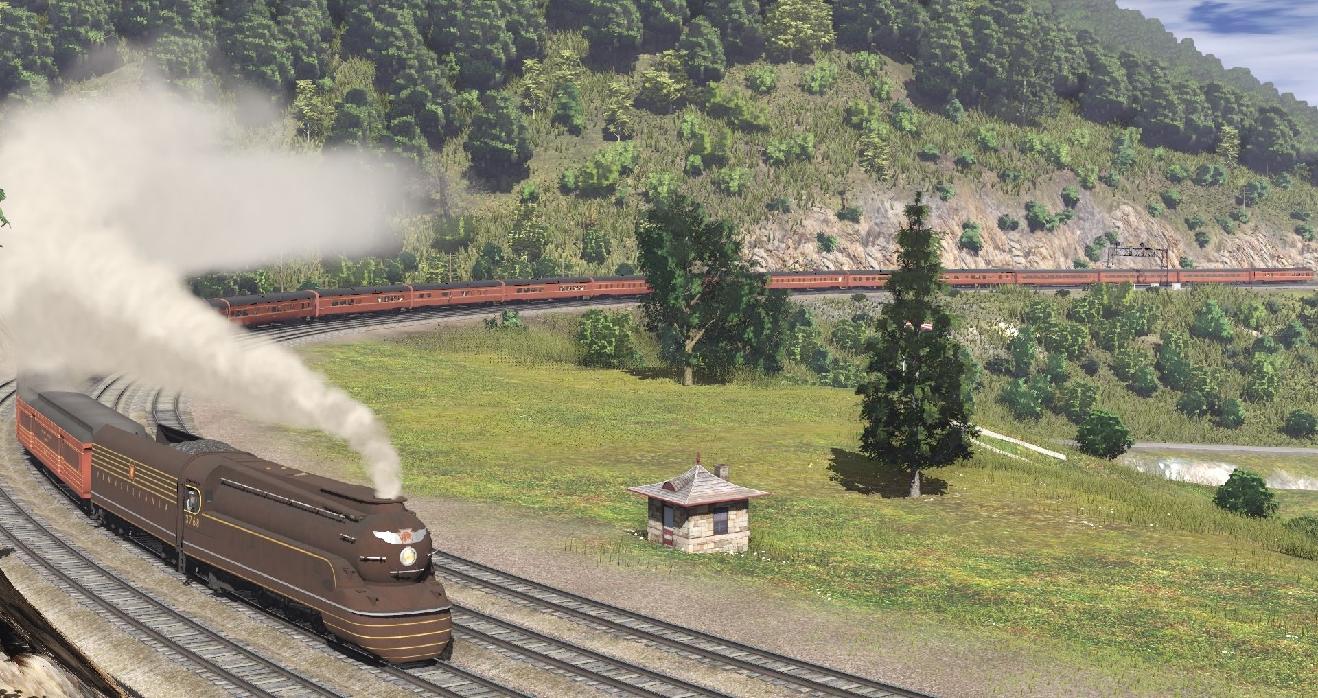 Tags: Trainz Railroad Simulator 2019, HSC updated enviro, Default, PRR K4 3768 Bronze Engine, PRR Engine C1 0-8-0, PRR FG-1 Articulated Engine, PRR J1 Engine, PRR Engine Q2 4-4-6-4, PRR K4 3768 Bronze Tender, PRR Engine C1 Tender C, PRR FOM B70 Baggage, PRR FG-1 Articulated Tender, 3DZ BWL City Series, 3DZ BWL County Series