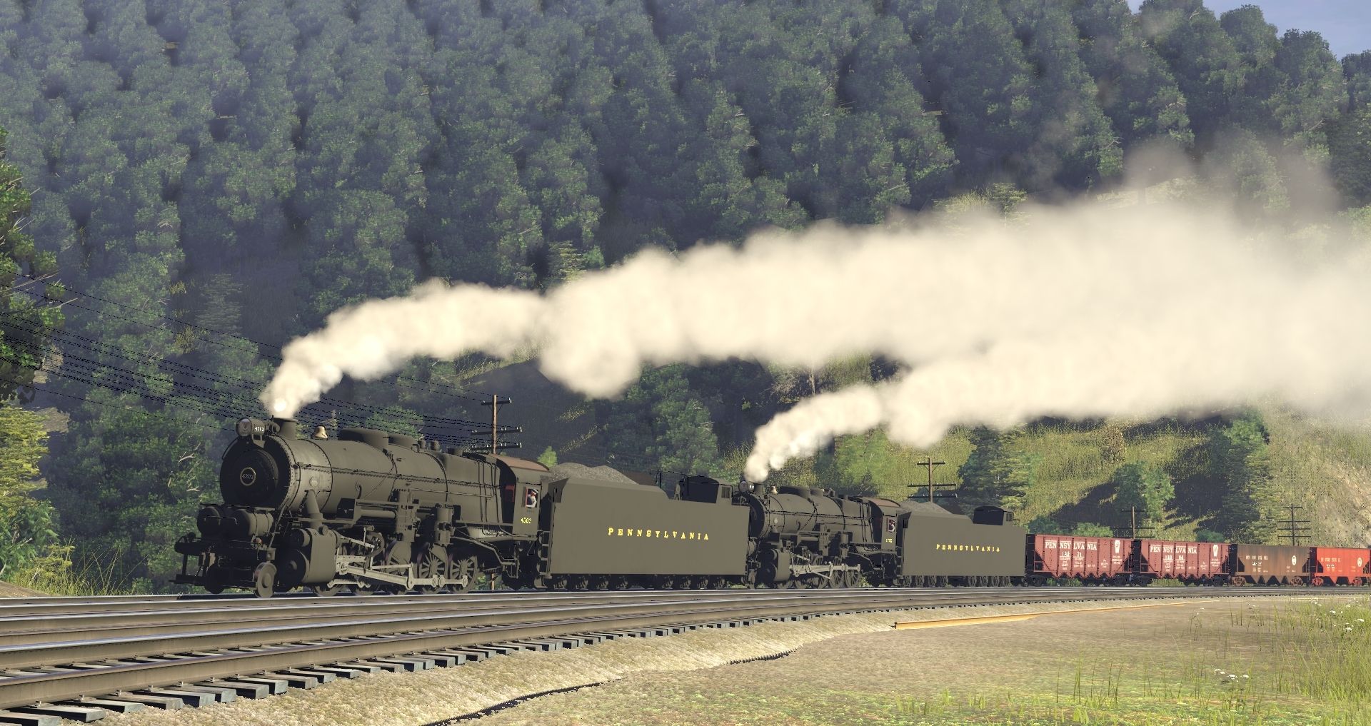 Tags: Trainz Railroad Simulator 2019, HSC updated enviro, Default, PRR I1sa Engine Pre-War, PRR I1sa Engine Post-War, PRR Engine C1 0-8-0, PRR M1b Engine, PRR J1 Engine, PRR FG-1 Articulated Engine, PRR I1sa Tender Coast to Coast Post-War, PRR I1sa Tender Coast to Coast Pre-War, PRR Engine C1 Tender C, PRR I1sa Tender 90F82 Post-War, PRR N5c Caboose 2