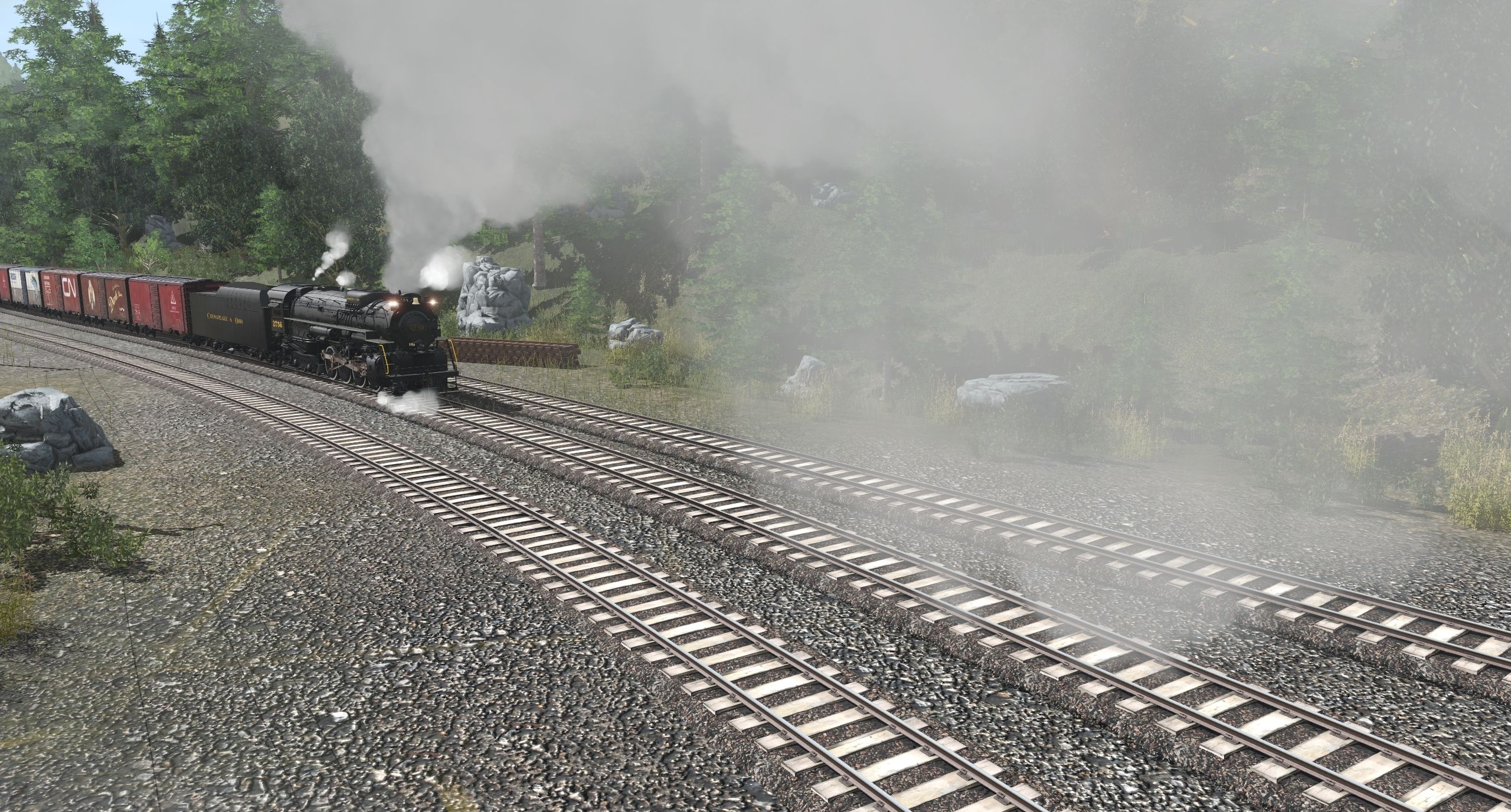 Tags: Trainz Railroad Simulator 2019, FeatherRiver_2019v2, C&O Kanawha K-4 Steam, C&O Kanawha K-4 Tender, Custom 40' Boxcar - #1, Custom 40' Boxcar - #3, Custom 40' Boxcar - #7, Custom 40' Boxcar - #6, Custom 40' Boxcar - #2, Custom 40' Boxcar - #5, Custom 40' Boxcar - #8, SP C50-9 Caboose