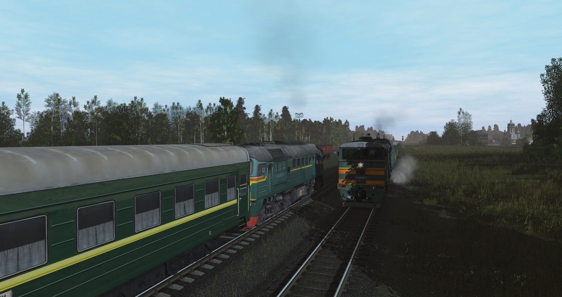 Tags: Trainz Railroad Simulator 2019, Belarusian woodland, №0182 Turov - Darovoye Day Passenger, M62-1628, 2TE10M-0019 A, 2TE10M-0019 B, SZD kupe Gorky-Tbilisi EPT-13489, xVg-12-532 half car #2, xVg-12-7023-02 half car #4, xVg-12-1592 half car #1, xVg-12-532 half car #1, xVg-12-7023-02 half car #6