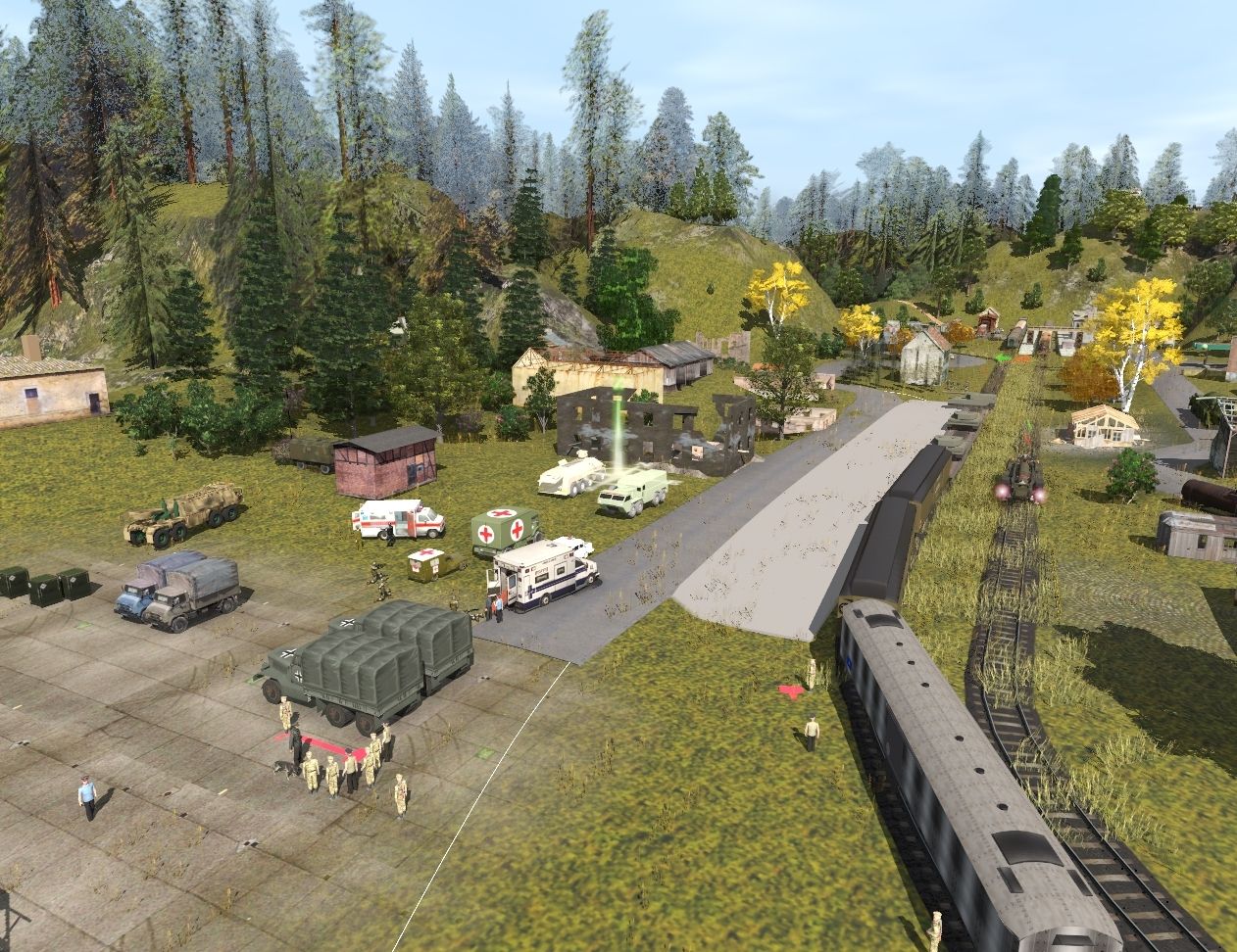 Tags: Trainz Railroad Simulator 2019, A1, Standard, Mountain Type, Ru - Skud Launch missile truck Drivable, Ru - Vehicule Long Articulated water Tank DRIVABLE, Mountain_Type_Tender, AS-Panzerwaggon, Army Hospital Ambulance Kitchten Car, Ru - Trailler vehicule water tank, Scrap GWR King class loco, Scrap GWR King class tender, FMA PKP Bhux wrecked, PKP Wagon Zlom Walbrzych