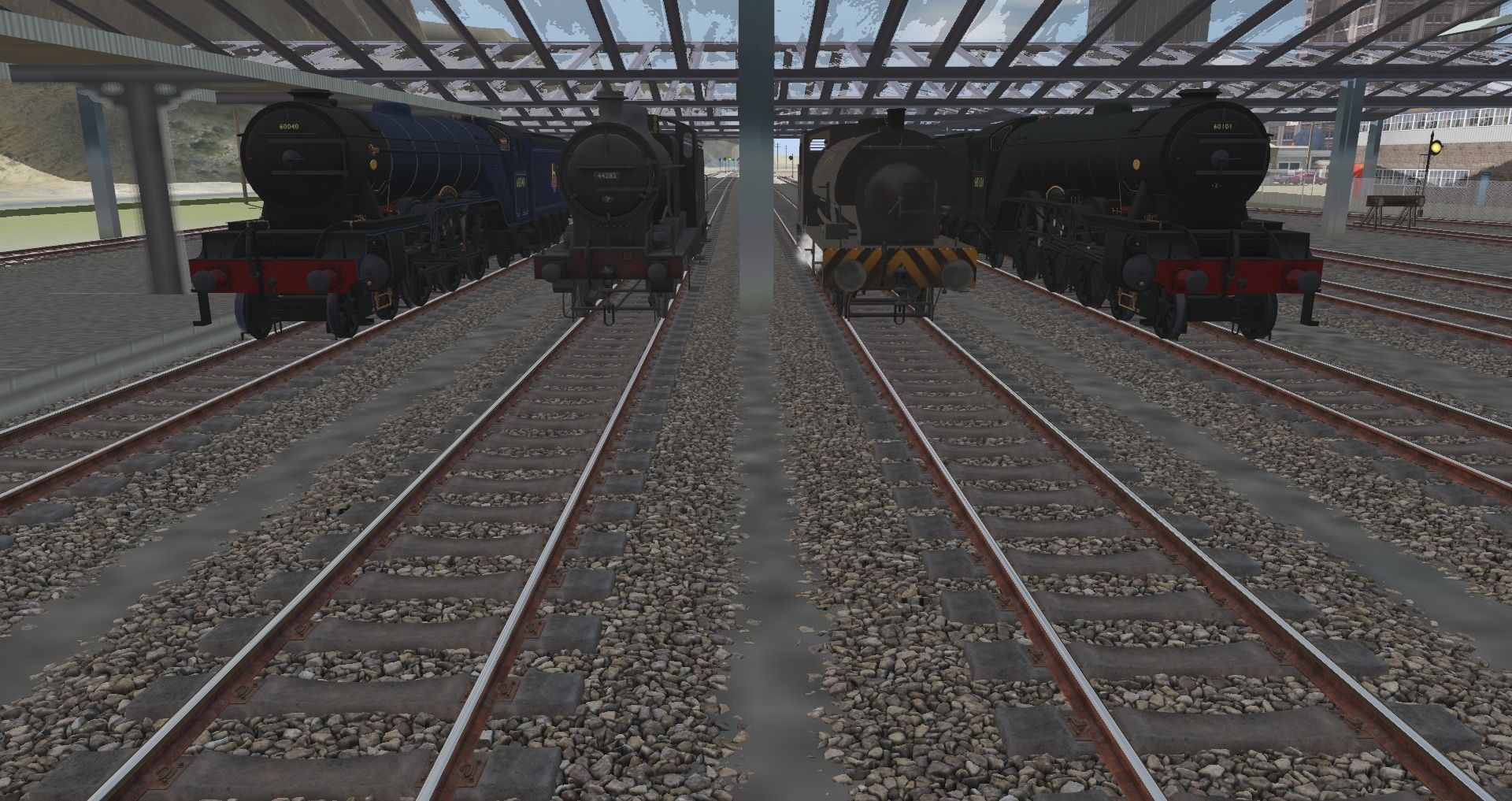 Tags: Trainz Railroad Simulator 2019, Highland Valley Industries 3 (My Version), Highland Valley Industries 3 (My Version) - Default, Fowler 4F BR Black, J94 class NCB, BR Gresley A3 LHD Green, BR Gresley A3 LHD Express Blue, Fowler 3500 Gallon Tender BR black, BR Gresley A3 Tender - Streamlined Non-Corridor Green Early Crest, BR Gresley A3 Tender - New Type Non-Corridor Express Blue