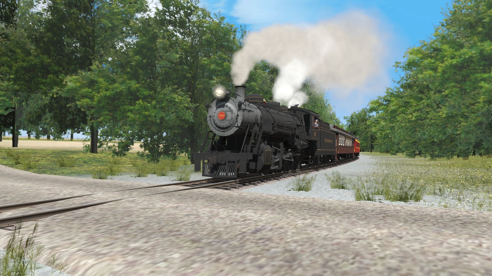 Tags: Trainz Railroad Simulator 2019, Strasburg Railroad V2 1990s/Early 2000s, Strasburg Railroad V2 Fixed - Default, SRC 90 Engine V3, SRC 90 Tender V3, SRC 07 Parlor Marian, SRC 09 Coach Walnut Hollow, SRC 10 Coach Lee E. Brenner, SRC 03 Coach Cherry Hill, SRC 15 Open Window Hello Dolly, CR Trinity 3 Bay Hopper, CNW ACF Centerflow 4 Bay long hatch, NS P-S 50_6ft Boxcar, Chessie (WM) 50' ACF Boxcar