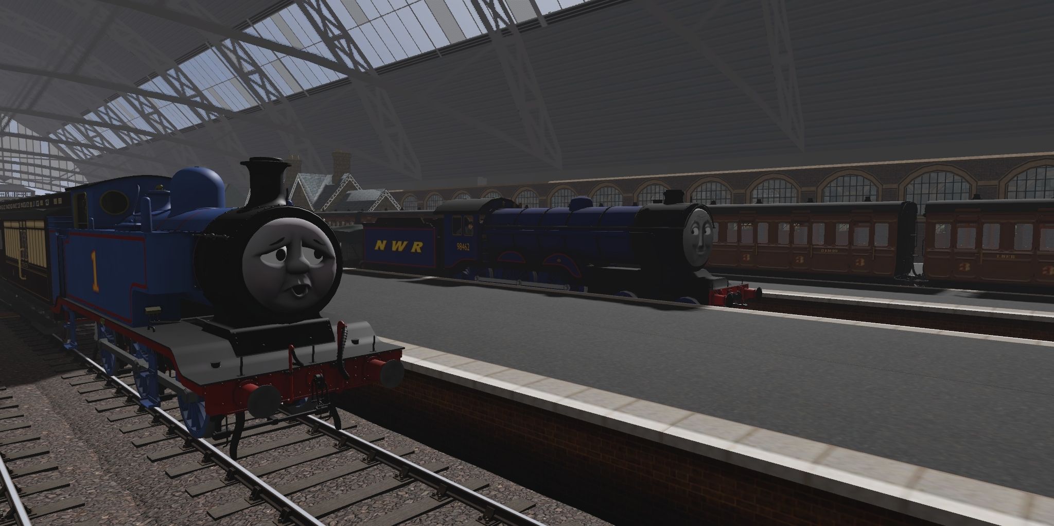 Tags: Trainz Railroad Simulator 2019, RWS/TVS Tidmouth - Vicarstown (New), Flying Cam, RWS 3D - RWS Thomas, B12 98462 (NWR Livery), LNER (ex-NBR) Holmes 49ft BT Brake Third, B12 98462 Tender (NWR Blue), GWR bogey clerestory brake, LNER (ex-NBR) Holmes 49ft T Third, NWR 4 Plank Wagon Tarpaulin, NWR Tar Tanker, NWR Non Vent Van, GWR bogey clerestory composite