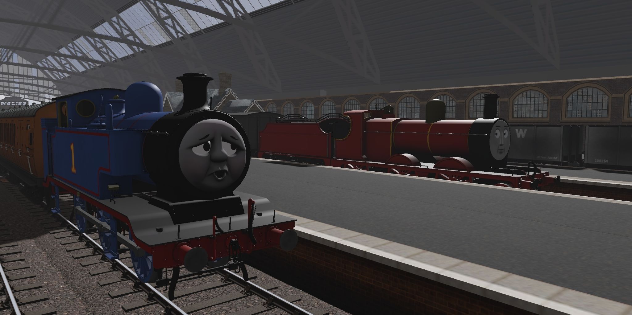 Tags: Trainz Railroad Simulator 2019, RWS/TVS Tidmouth - Vicarstown (New), Flying Cam, RWS 3D - RWS Thomas, Winston the Red Engine, Winston's Tender, Si3D - Suburban Brake Coach (RWS), GWR 20T Wagon dirty, NWR Non Vent Van, Si3D - Suburban Coach (RWS), NWR Spiteful Brakevan