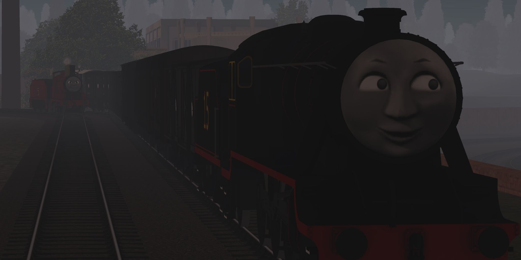 Tags: Trainz Railroad Simulator 2019, RWS/TVS Tidmouth - Vicarstown (New), Flying Cam, Peter the Heavy Goods Engine, RWS 3D - RWS James, Peter's Tender, NWR Non Vent Van, TRW - SECR 8 Wheeled Van, TRW - SECR 4 Wheeled Van, TRW - LNWR 6T Van, TRW - L&B Box Van (Raised Buffers), TRW - LBSC 8T Van, TRW - LMS 12T Steel Van