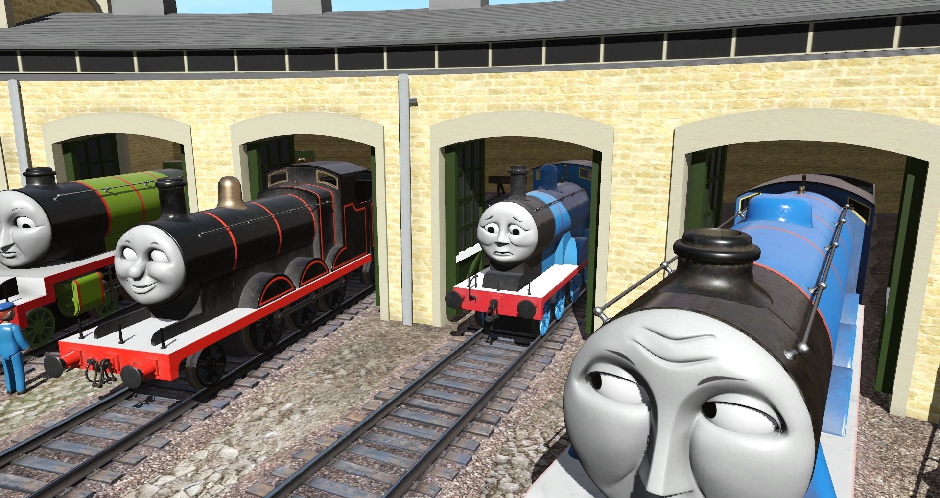 Tags: Trainz Railroad Simulator 2019, S1 Tidmouth Sheds, Default, TTTE - Gordon, Alfred the Loaned Engine, TTTE - James the Red Engine, TRW - Edward The Blue Engine (TVS) TS19, TTTE - Thomas The Tank Engine [TRS19], TTTE - Old Shape Henry, Alfred's Tender (Reskin), TTTE - Gordon's Tender, TTTE - James's Tender, TRW - Edward's Tender (TVS) TS19, TTTE - Henry's Tender