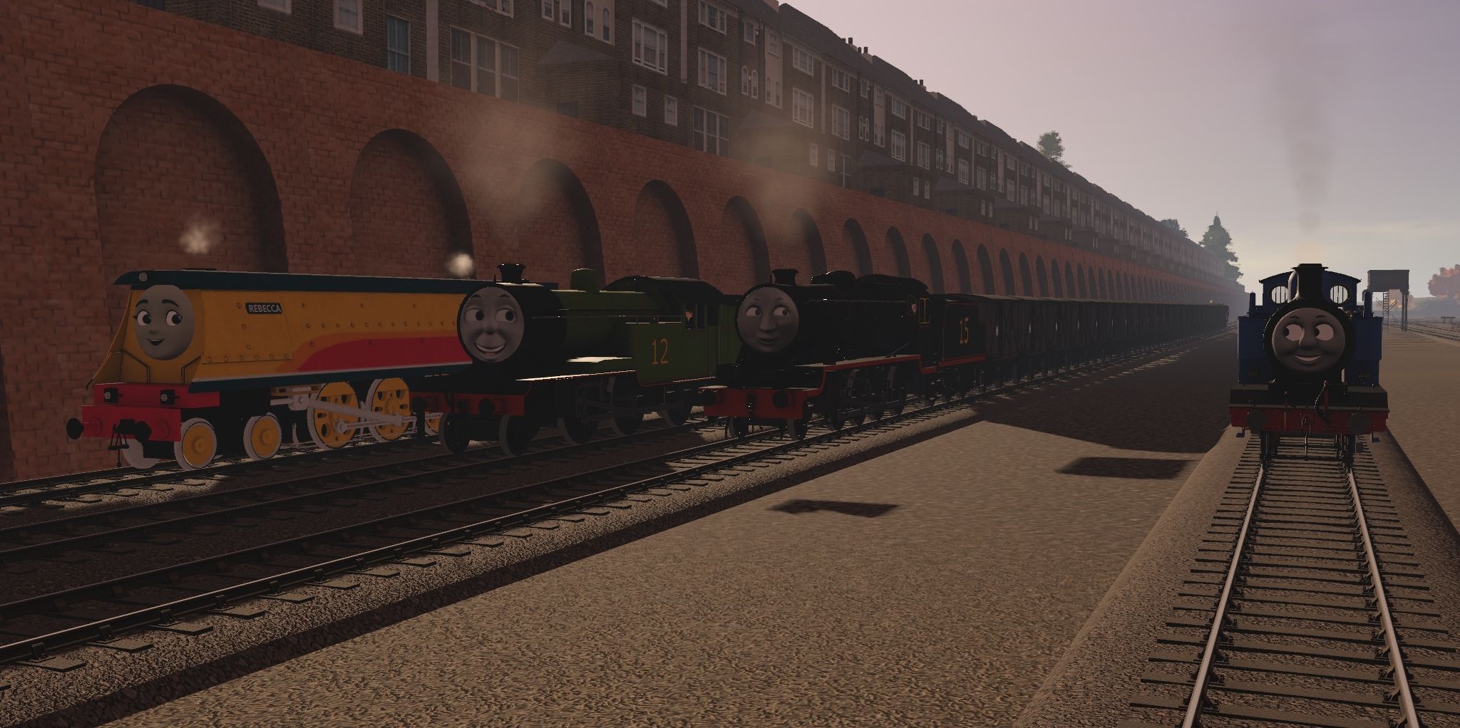 Tags: Trainz Railroad Simulator 2019, RWS/TVS Tidmouth - Vicarstown (New), Flying Cam, RWS 3D - RWS Thomas, CR3D - Rebecca, Eric the Prarie Tank Engine, Peter the Heavy Goods Engine, CR3D - Rebecca Tender, Peter's Tender, NWR Non Vent Van, NWR Spiteful Brakevan, Sodor Breakdown Crane, Sodor Breakdown Flat Truck