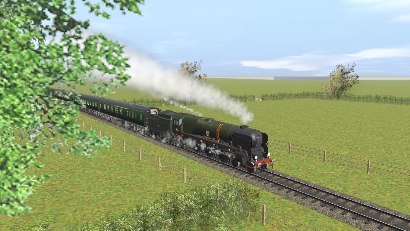 Tags: Trainz Railroad Simulator 2019, LBSCR2, Test nrun, SR/BR Rebuilt BB/WC Class Loco, SR/BR Rebuilt WC/BB Tender, BR Mk1 BCK Green (late), BR Mk1 SO Green, BR Mk1 RMB (diag 99) Green, BR Mk1 BFK Green (late)