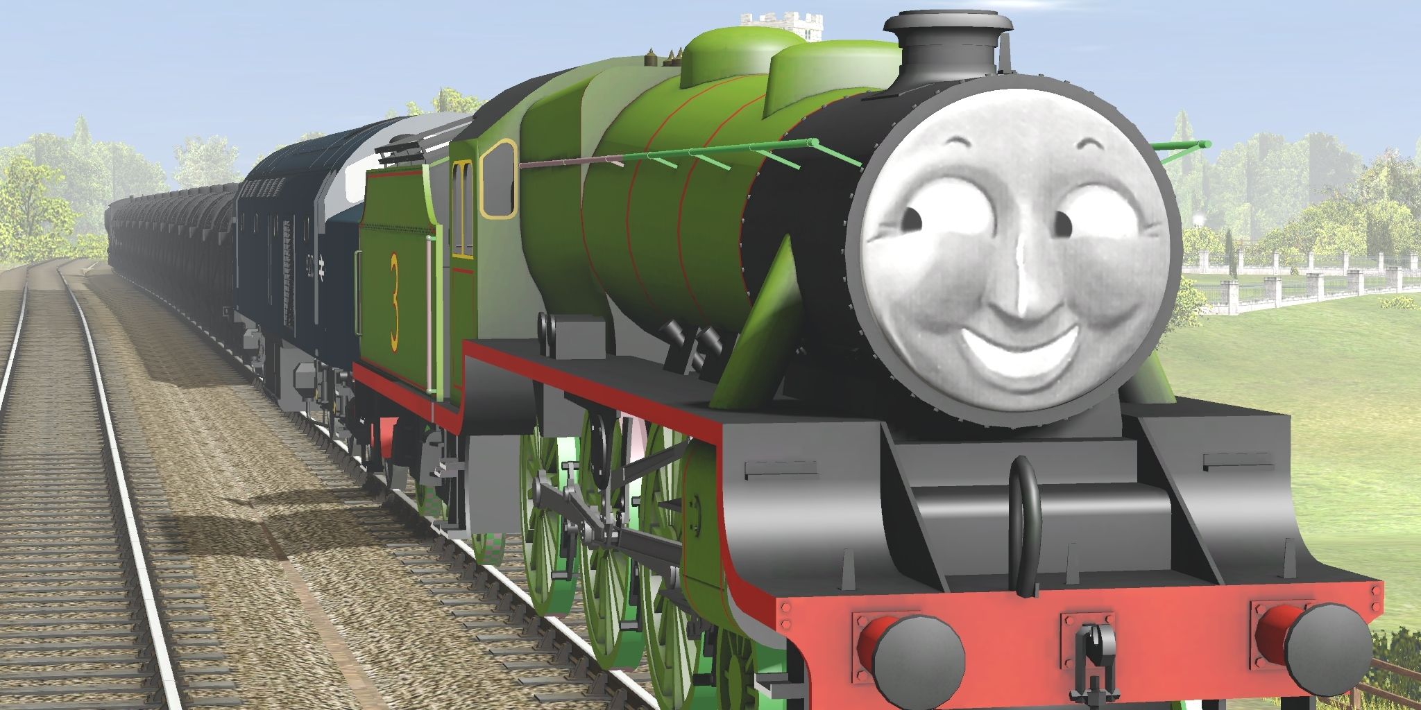 Tags: Trainz Railroad Simulator 2019, Little Western, Flying Cam, RWS Henry (New Shape), Patrick the Class 40 (BR Blue), RWS Henry (New Shape) - Fowler Tender, TRW - 14T Fuel Tanker, TRW - SR 25T Pillbox Brakevan
