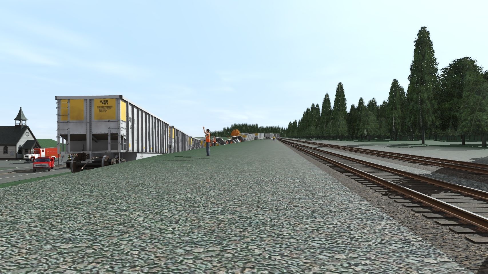 Tags: Trainz Railroad Simulator 2019, Arel and Jolene Stateline Route, Default, A&J C40-8, A&J SD70MAC, JMR Hi-Rail (no roadname), A&J Bethgon Hopper