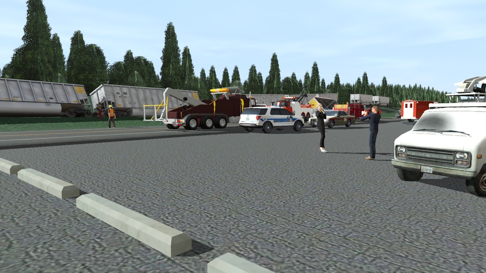 Tags: Trainz Railroad Simulator 2019, Arel and Jolene Stateline Route, Default, A&J C40-8, A&J SD70MAC, JMR Hi-Rail (no roadname), A&J Bethgon Hopper