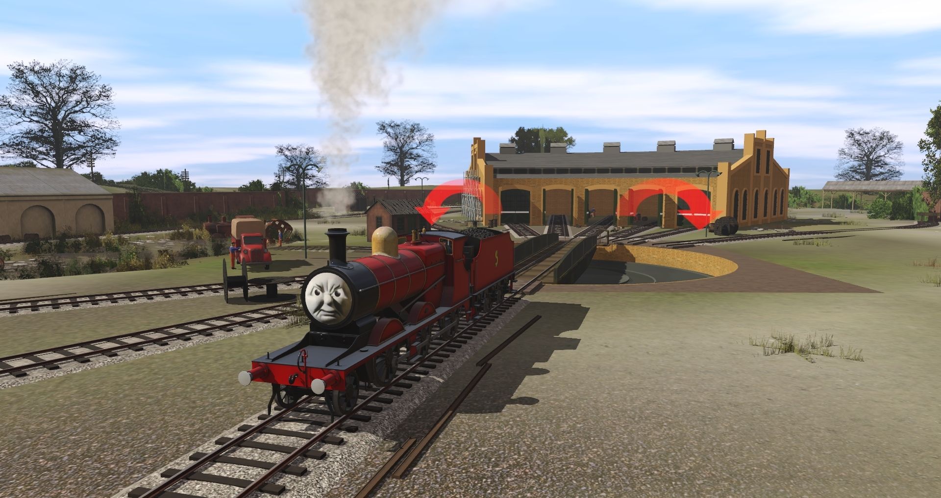 Tags: Trainz Railroad Simulator 2019, S1 - Knapford Sheds and Yards, Default, NWR James No. 5 With Face, NWR No.1 'Thomas' 1915, NWR James 6 Wheel Tender, NWR 4 Wheel Brake 3'rd, NWR Suburban Brake, NWR 4 Wheel 3'rd, NWR Suburban Third