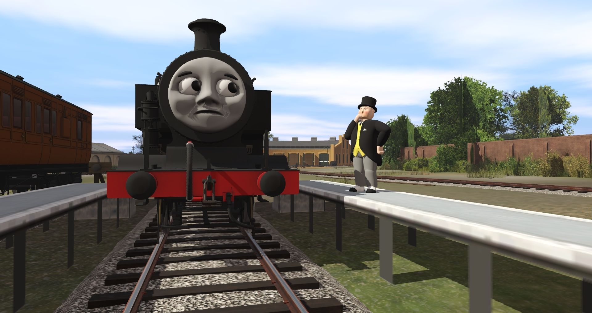 Tags: Trainz Railroad Simulator 2019, S1 - Knapford Sheds and Yards, Default, NWR No.1 'Thomas' 1915, NWR James No. 5 With Face, NWR Suburban Brake, NWR 4 Wheel 3'rd, NWR 4 Wheel Brake 3'rd, NWR Suburban Third, NWR James 6 Wheel Tender